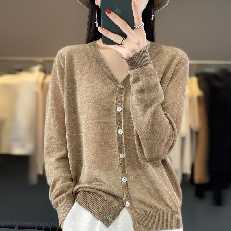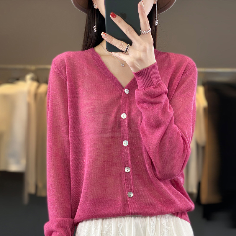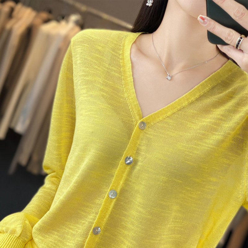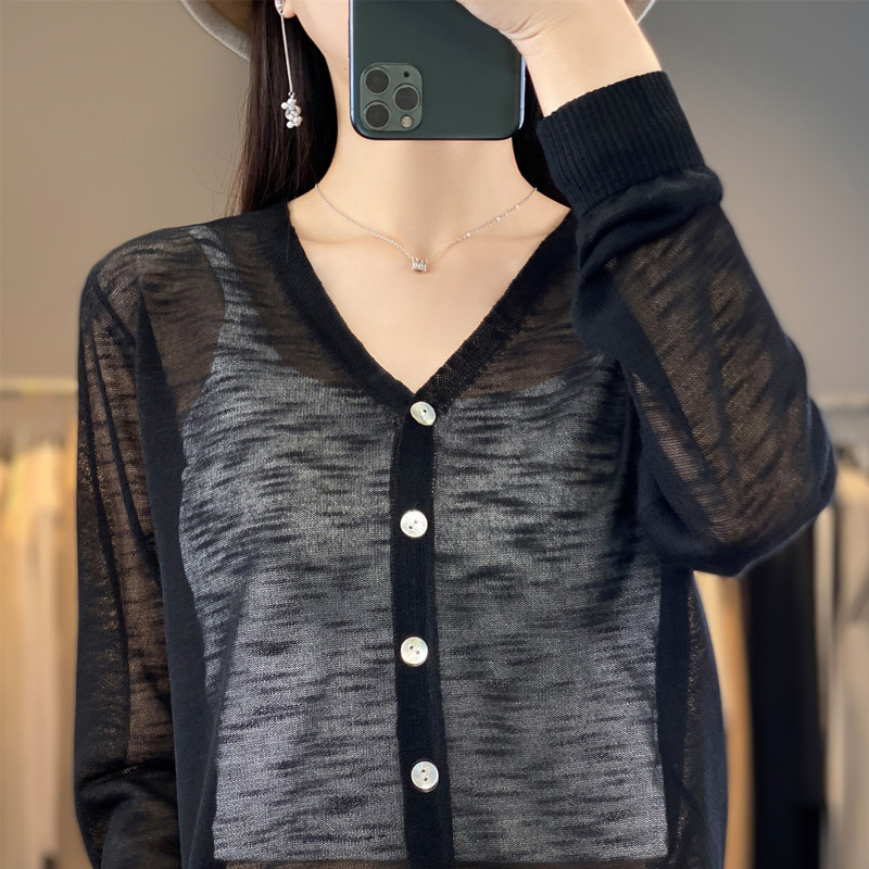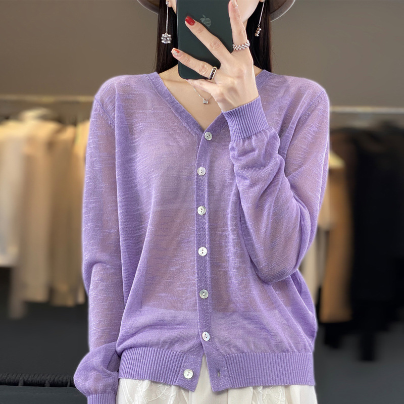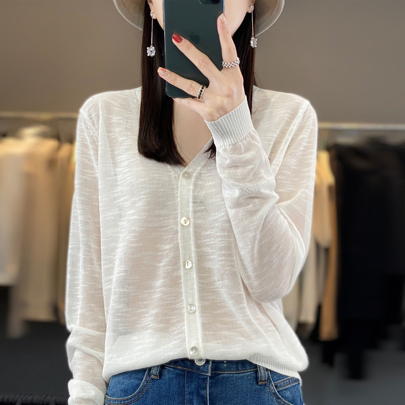 도매 속이 빈 숄 얇은 스웨터 여성 카디건 아이스 실크 선 스크린 V 넥 봄과 여름 외부 통근 재킷