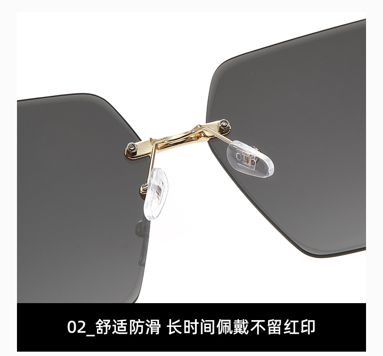 새로운 패션 트렌드 높은 감각 프레임리스 선글라스 남성과 여성 선글라스 자외선 차단 대형 프레임 트림 선글라스