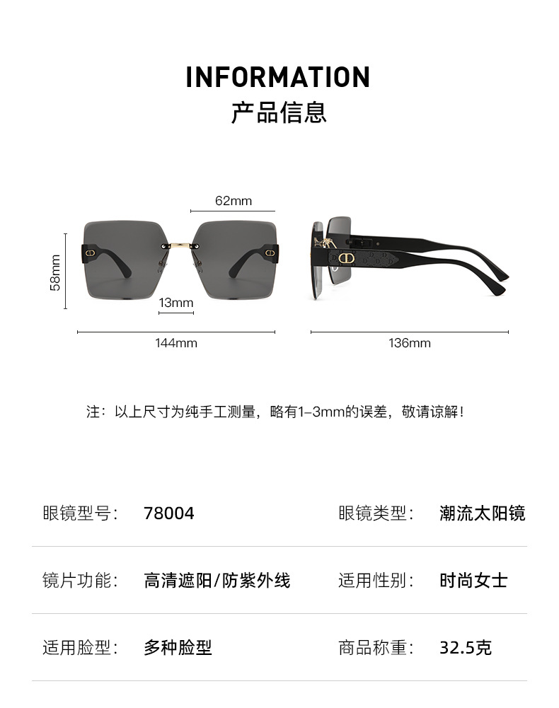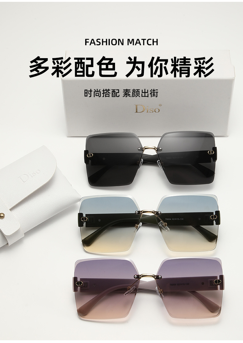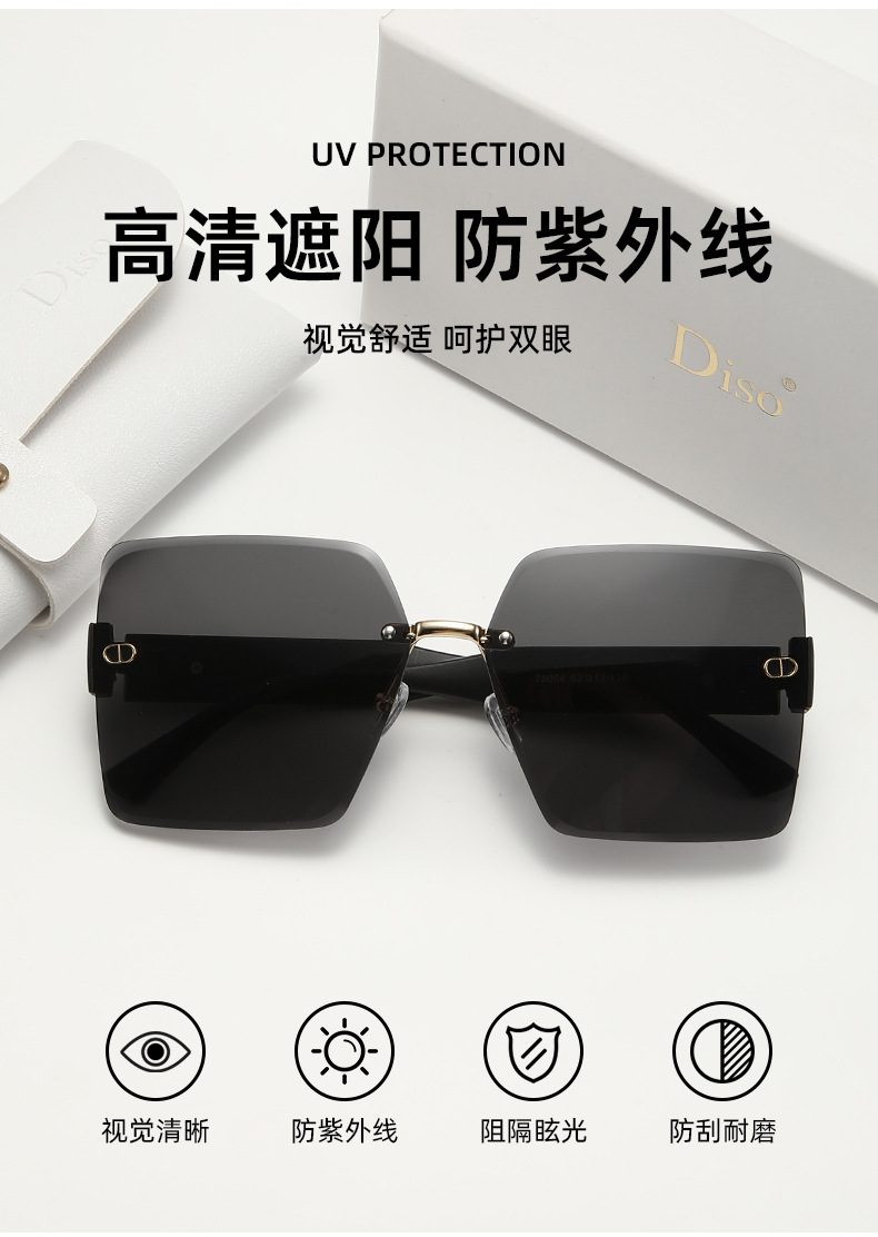 새로운 패션 트렌드 높은 감각 프레임리스 선글라스 남성과 여성 선글라스 자외선 차단 대형 프레임 트림 선글라스스토어 가기