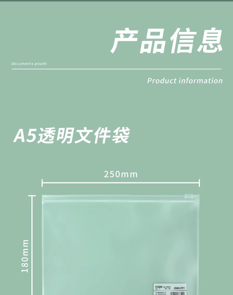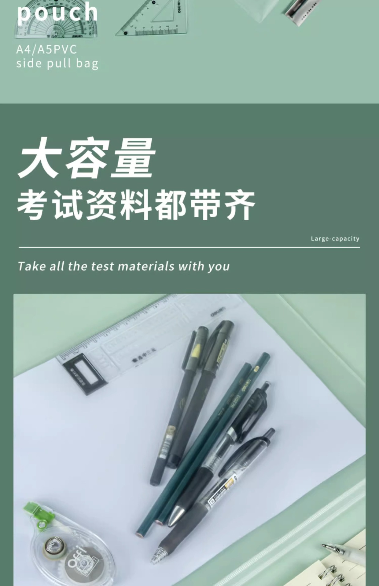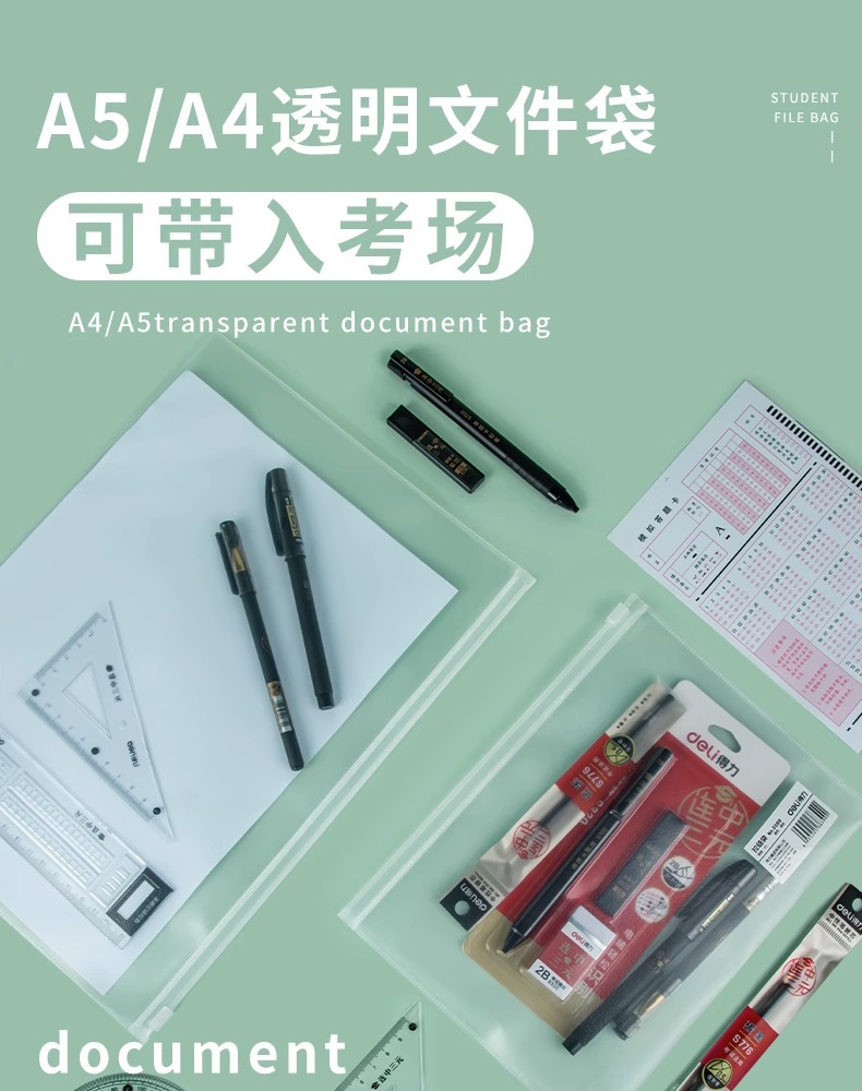 델리 A5 파일 가방 시험용 특수 가방 투명 지퍼 가방 A4 고등학생 문구 보관 가방 입학 시험