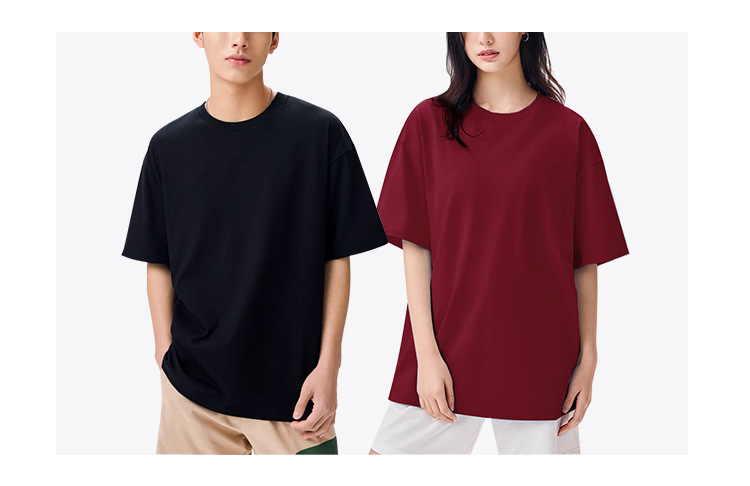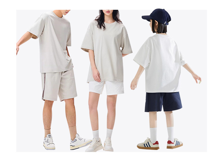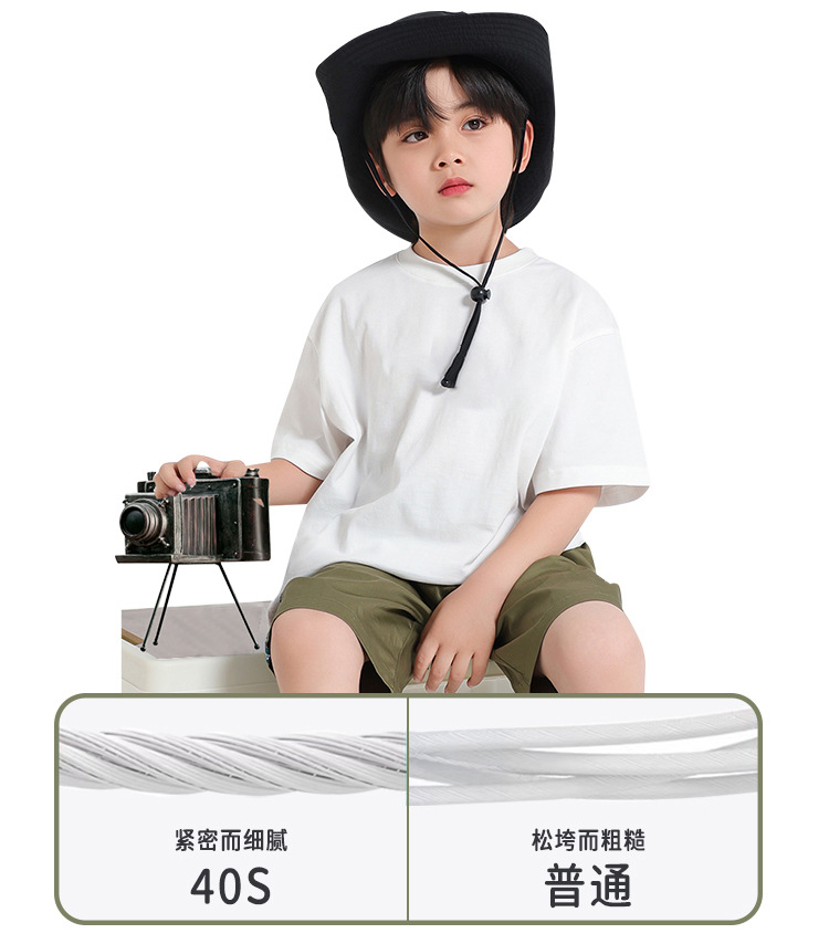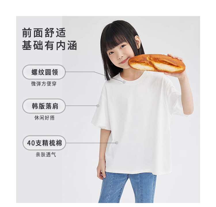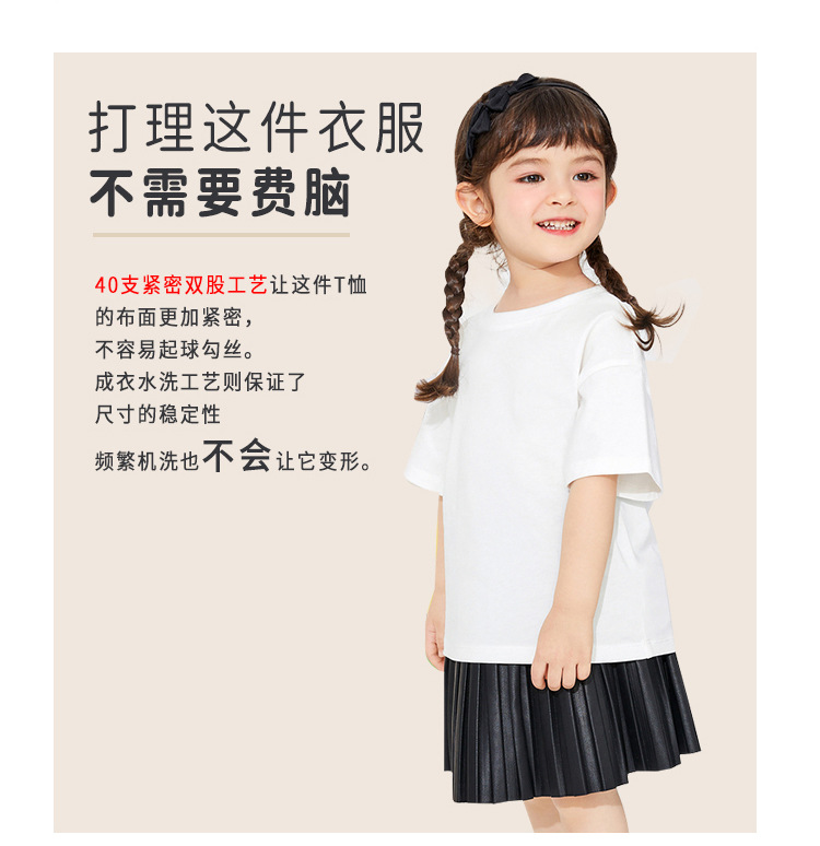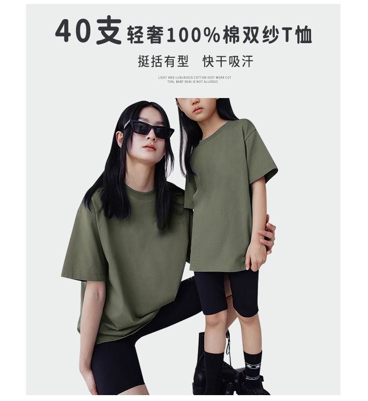 [40] 일본 레트로 더블 원사 부모-자식 단색 반팔 티셔츠 아동 한국의 느슨한 어머니와 여성의 여름