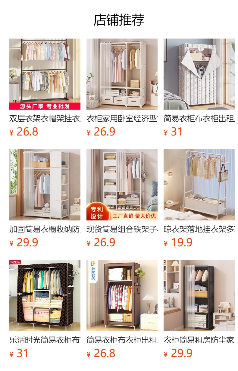 옷장 가정용 침실 간단한 조립 옷장 경제적 인 견고하고 튼튼한 소형 아파트 캐비닛 임대 주택을위한 간단한스토어 가기