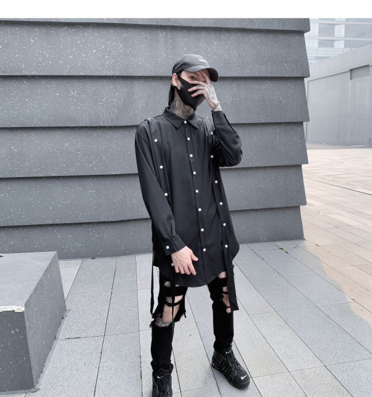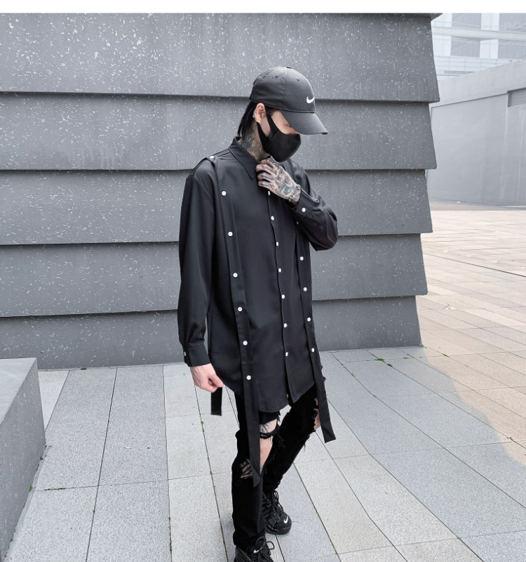 봄과 여름 남성용 긴팔 셔츠 느슨한 비 다림질 캐주얼 유행 청소년 셔츠 코트 C81 P75스토어 가기