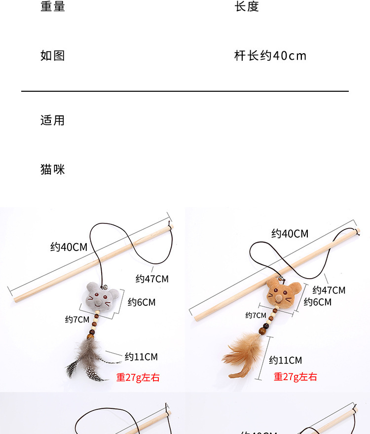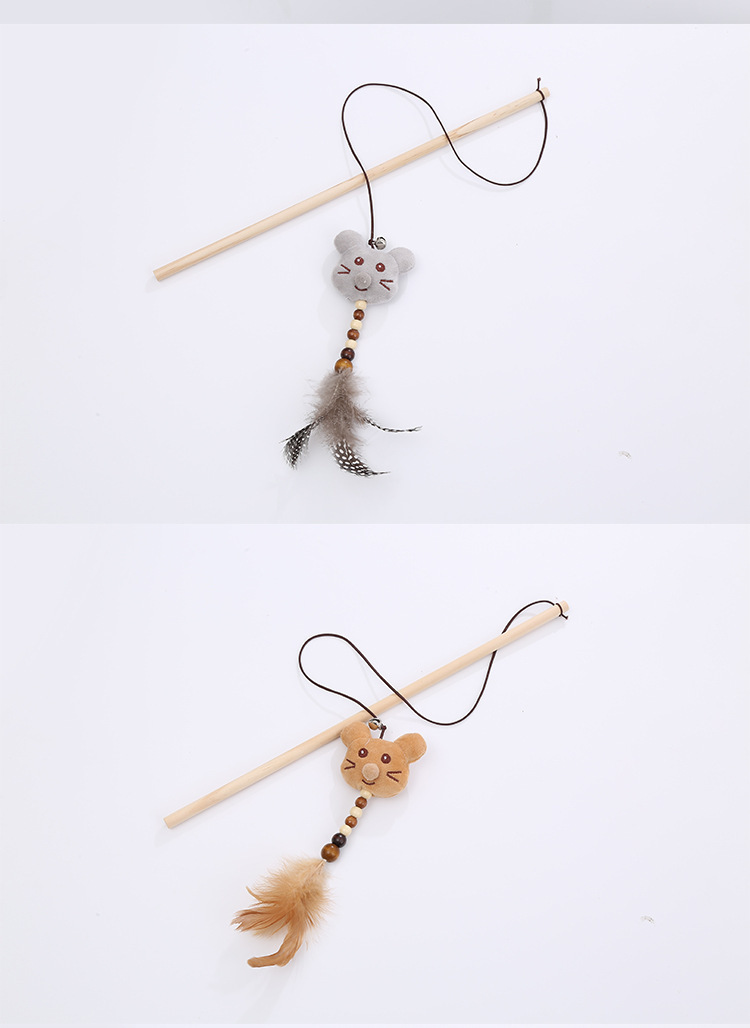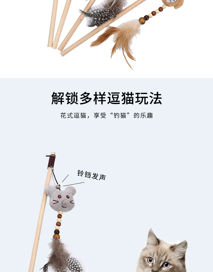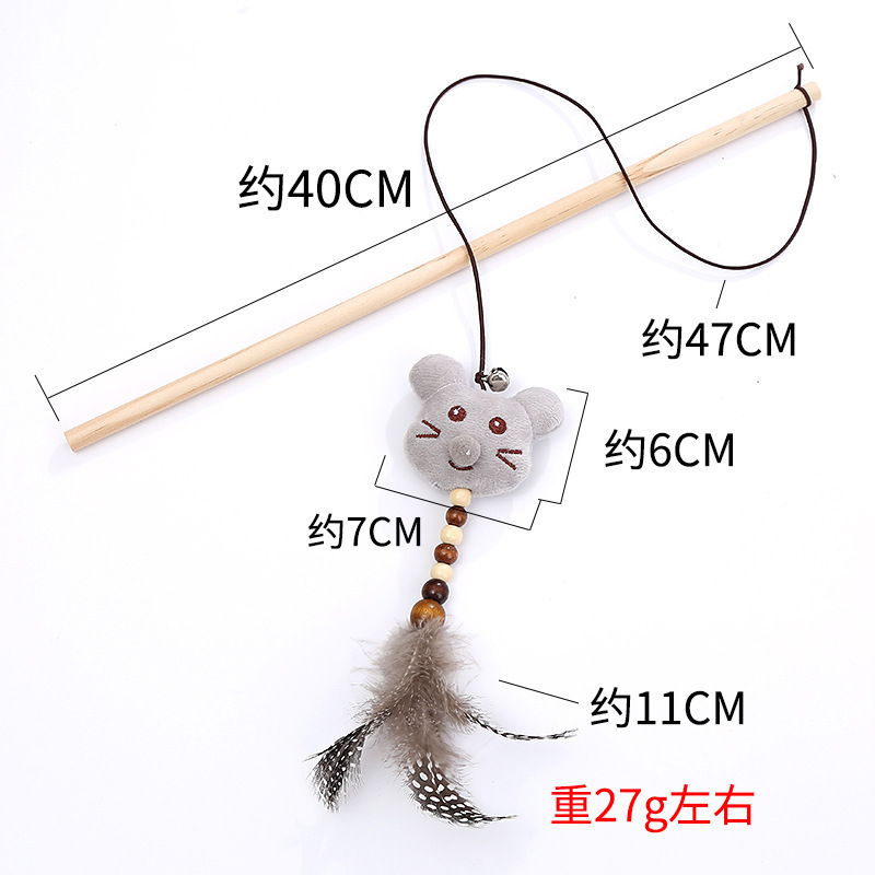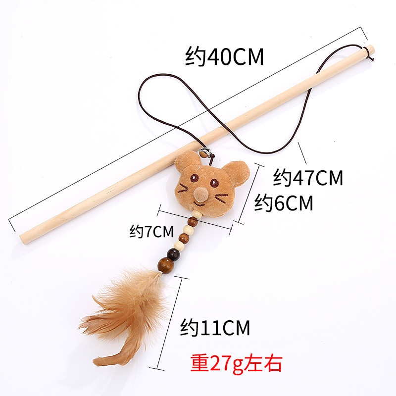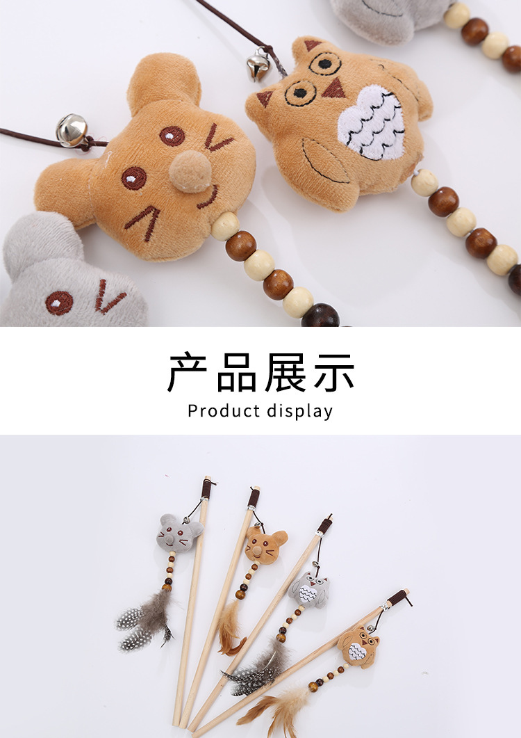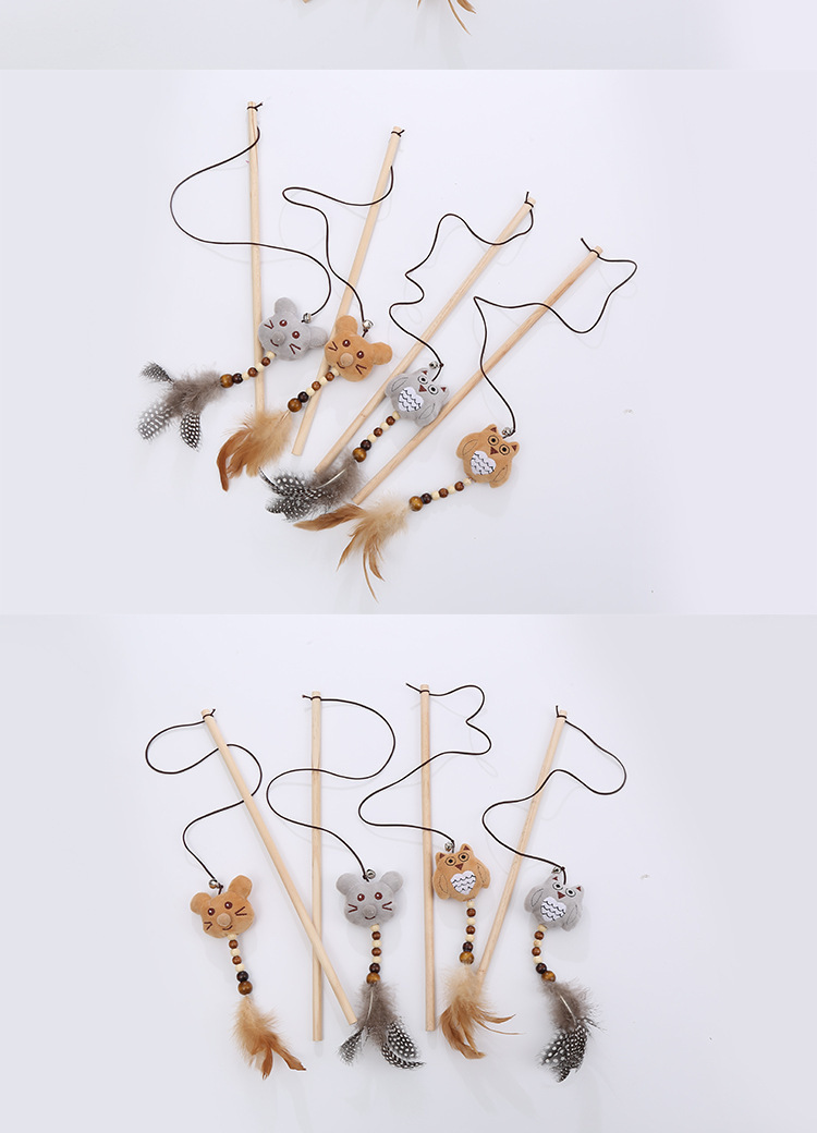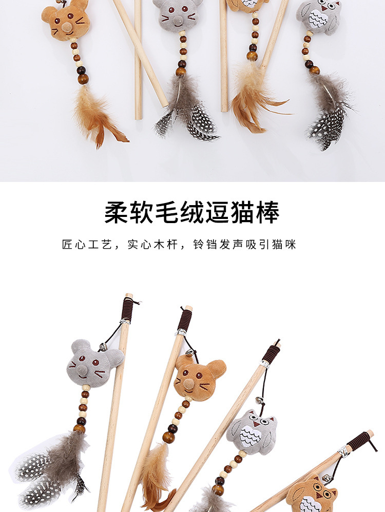 印第安风原木杆小熊狮子逗猫棒宠物用品猫玩具 现货出口厂家批发
