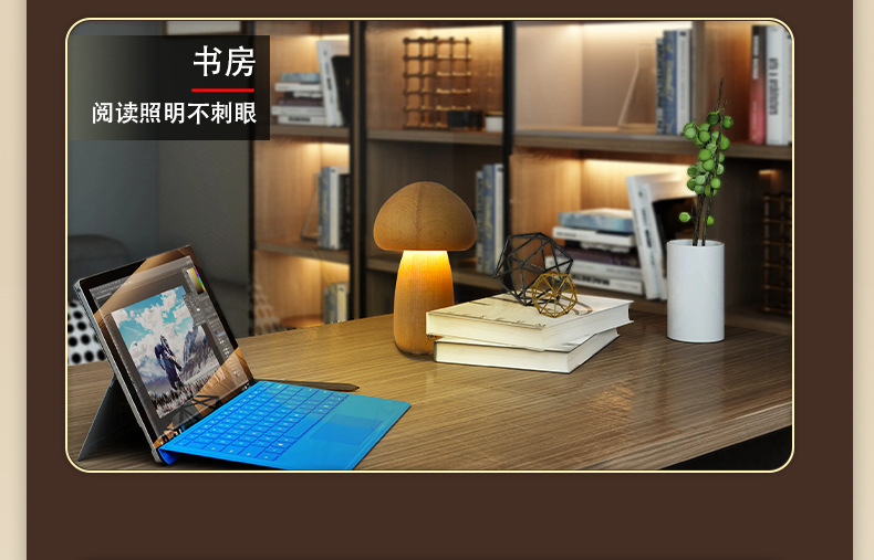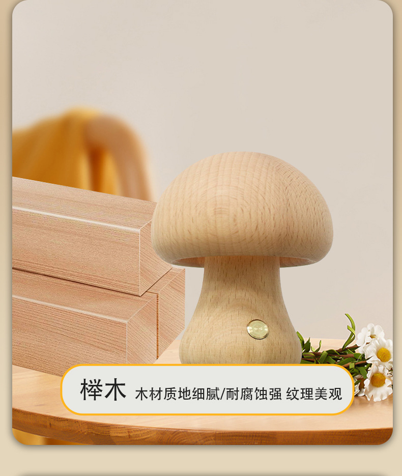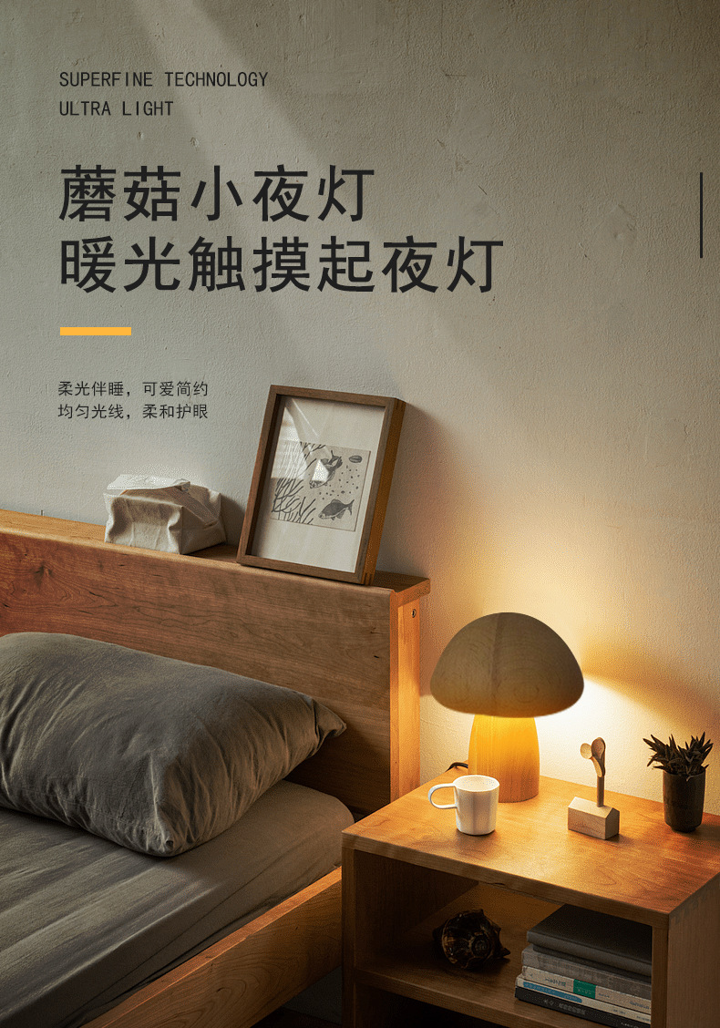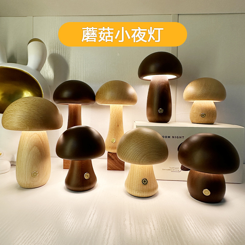 북유럽 버섯 침실 침대 옆 램프 회전 단단한 나무 연구 거실 led 벽 램프 홈 유도 야간 조명