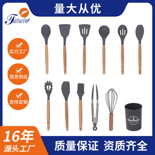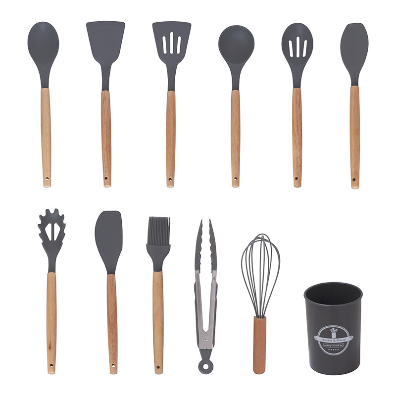 고품질 실리콘 주방용품 12종 세트 주방 조리 도구 너도밤나무 손잡이 주방용품 세트 붙지 않는 냄비는 냄비를 손상시키지 않습니다