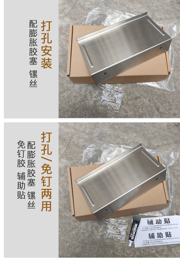 구멍 없는 솔질 스테인리스 스틸 라이트 럭셔리 화장실 플라스틱 수납 랙 벽걸이 형 욕실 화장실 수납 폰 홀더
