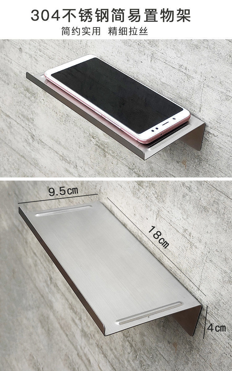 구멍 없는 솔질 스테인리스 스틸 라이트 럭셔리 화장실 플라스틱 수납 랙 벽걸이 형 욕실 화장실 수납 폰 홀더스토어 가기