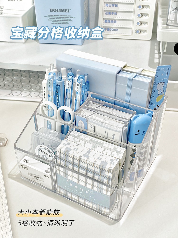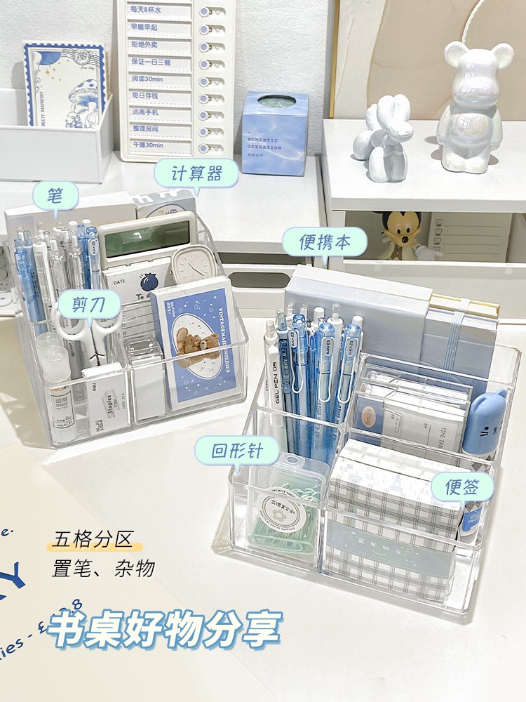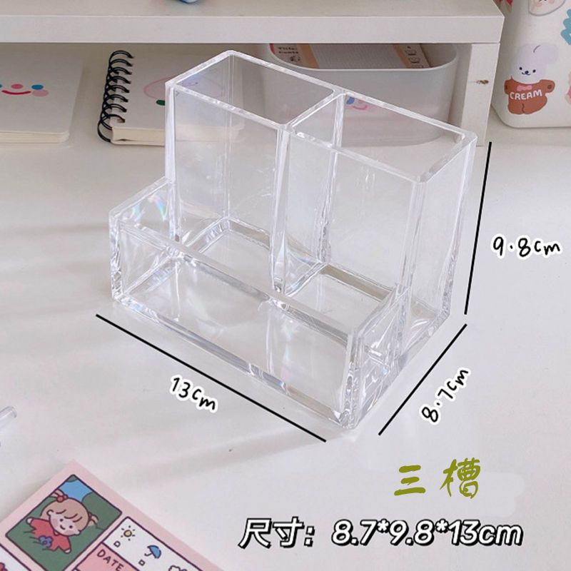 아크릴 투명 펜 홀더 학생 책상 보관 상자 멀티 그리드 간단한 다기능 보관 실린더 데스크탑 마무리 상자