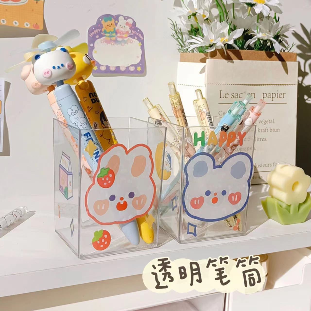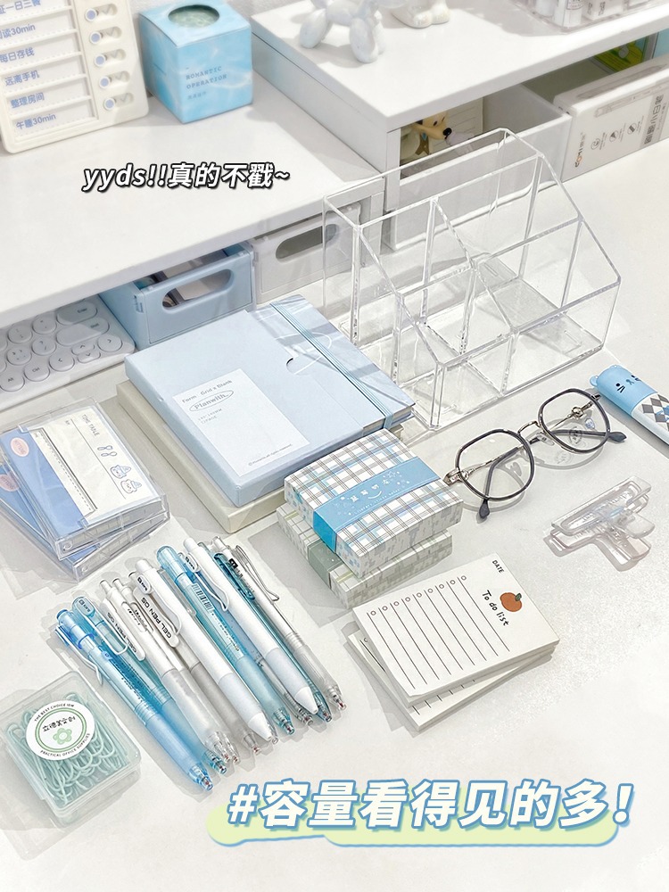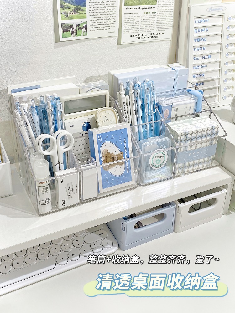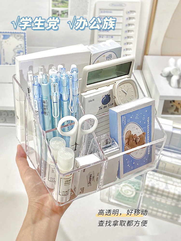 아크릴 투명 펜 홀더 학생 책상 보관 상자 멀티 그리드 간단한 다기능 보관 실린더 데스크탑 마무리 상자스토어 가기