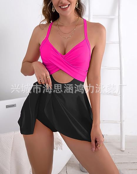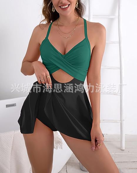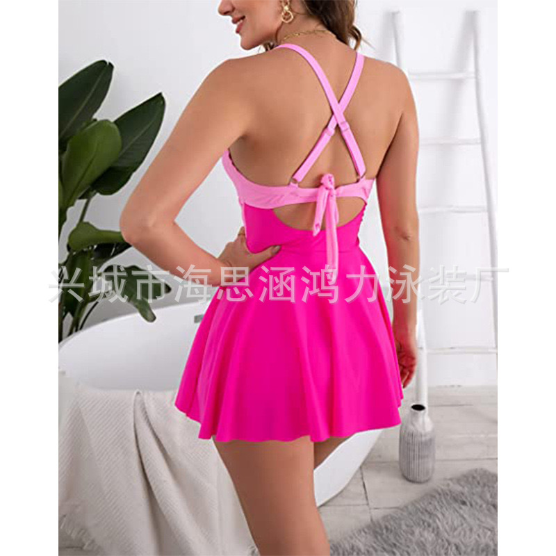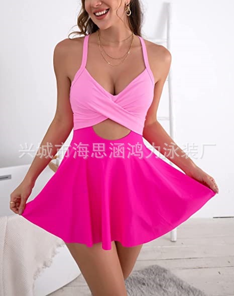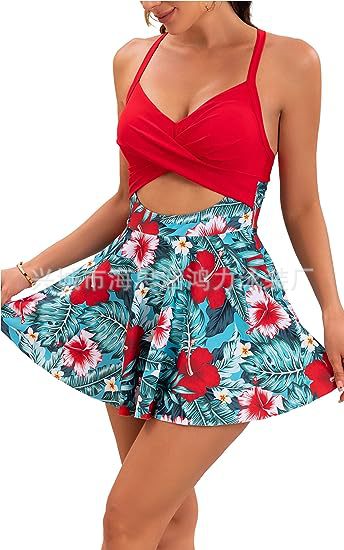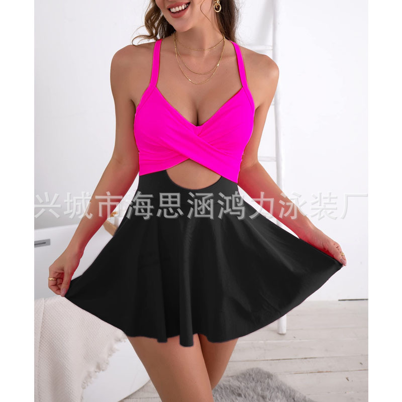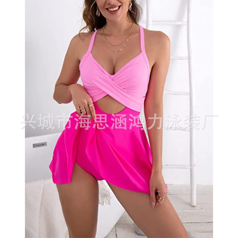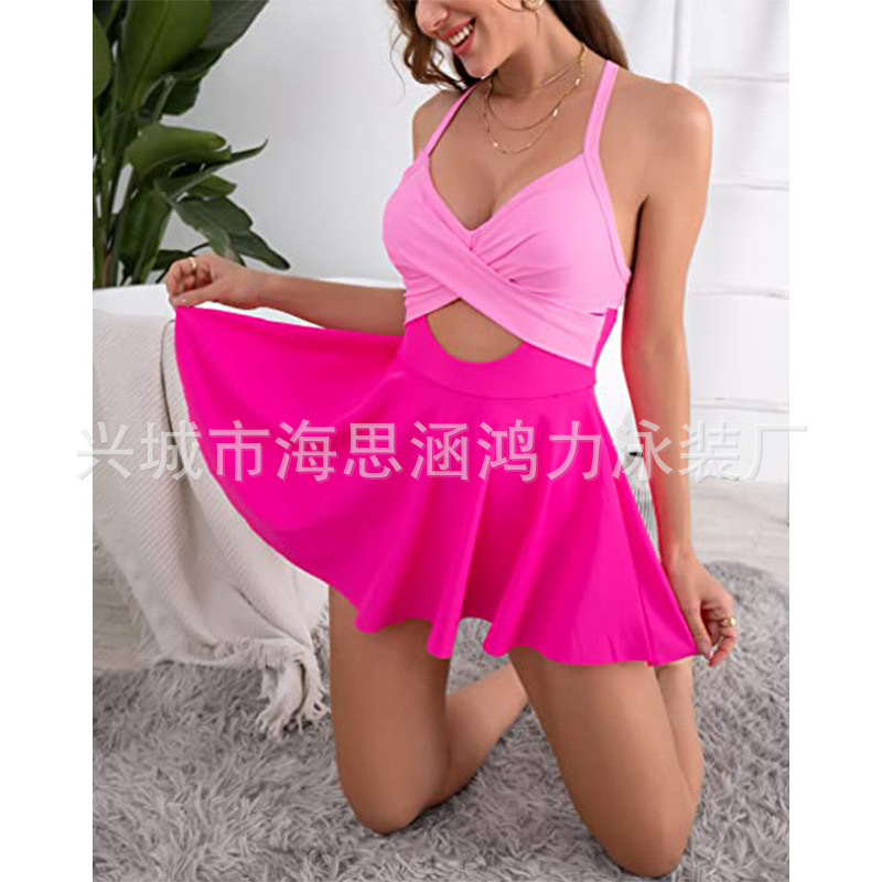 2023 유럽 및 미국 수영복 대외 무역 원피스 대형 여성용 원피스 아마존 해외판매 스트랩 스커트 하이웨이스트 원피스스토어 가기