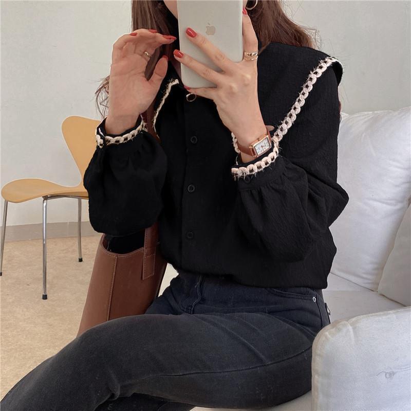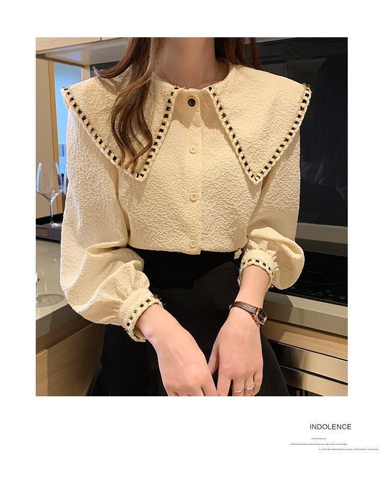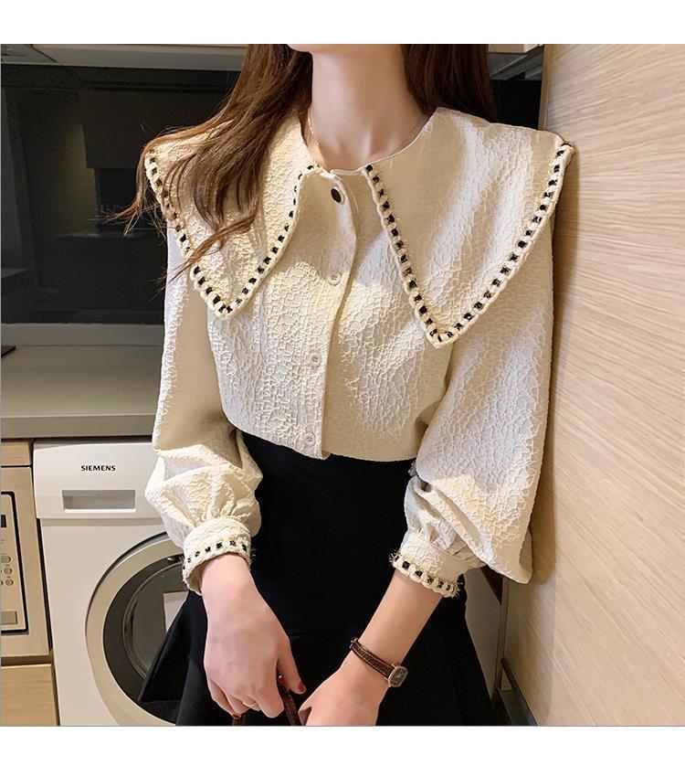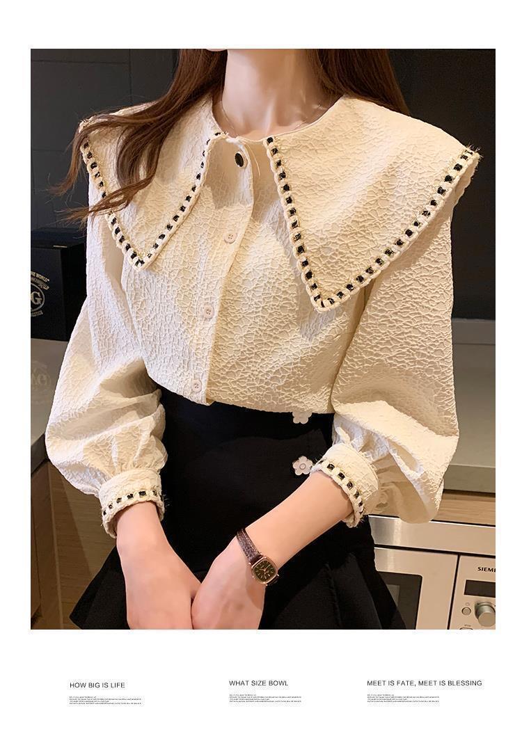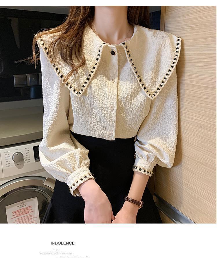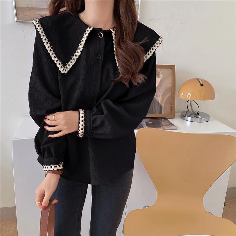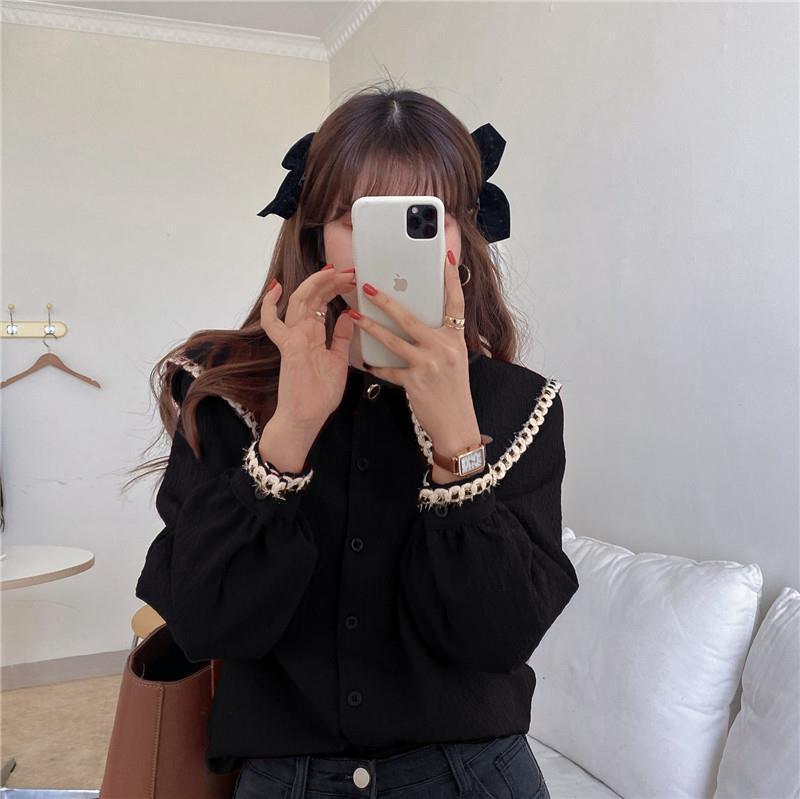 프랑스 복고풍 시크 탑 여성의 최신 유행 봄과 가을 인터넷 인기 큰 인형 칼라 셔츠 여성의 느슨한 디자인 감각스토어 가기