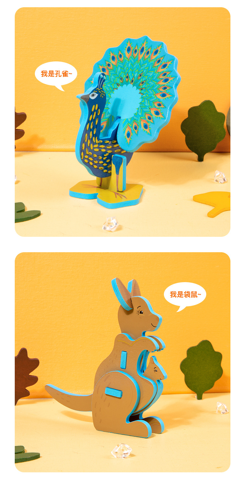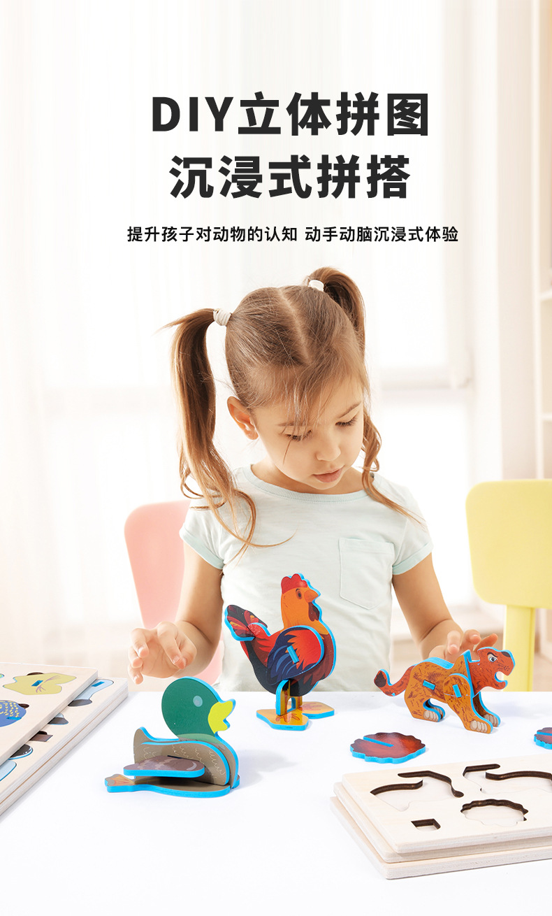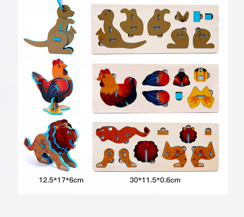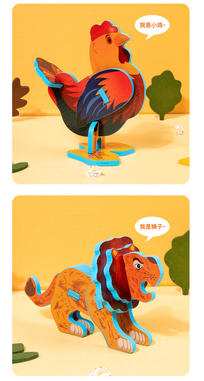 어린이 나무 직소 퍼즐 동물 3D 입체 모자이크 장난감 유치원 수제 DIY 조립 조기 교육 장난감스토어 가기