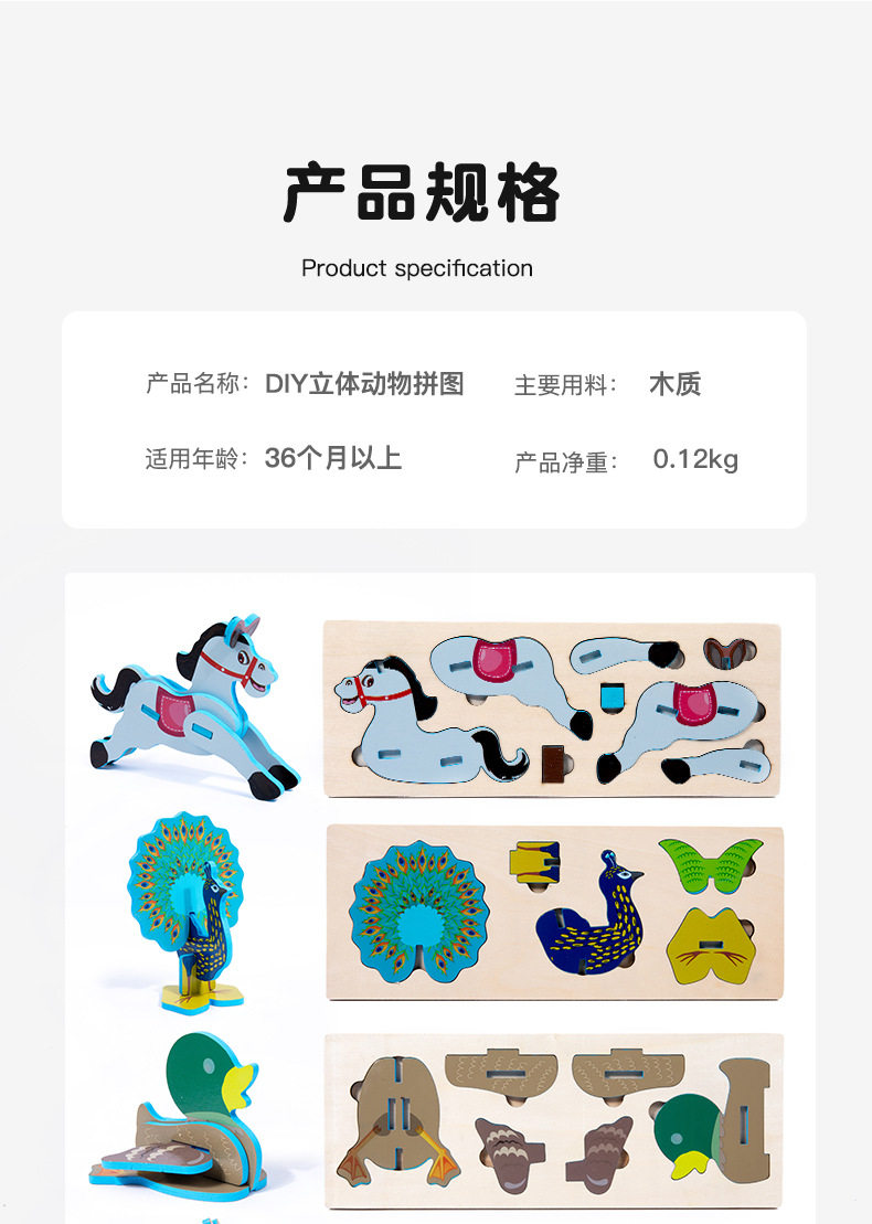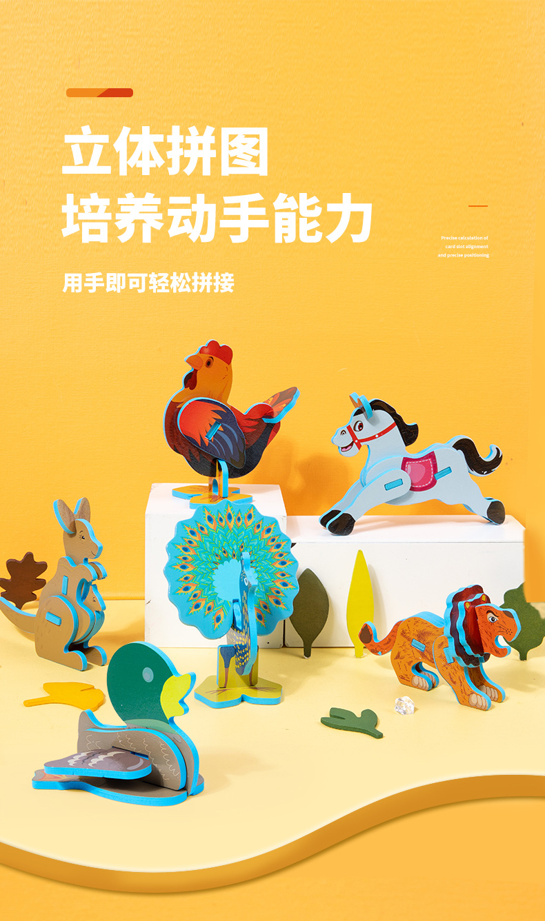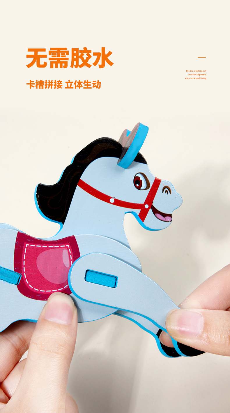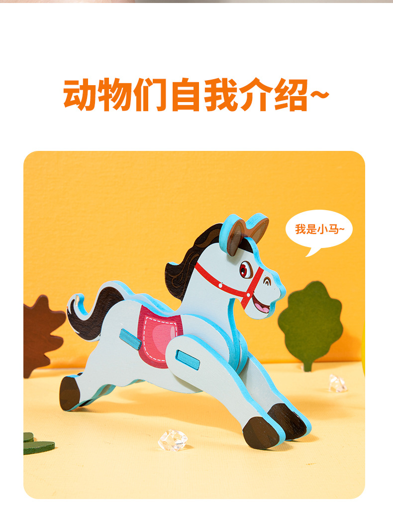 어린이 나무 직소 퍼즐 동물 3D 입체 모자이크 장난감 유치원 수제 DIY 조립 조기 교육 장난감스토어 가기