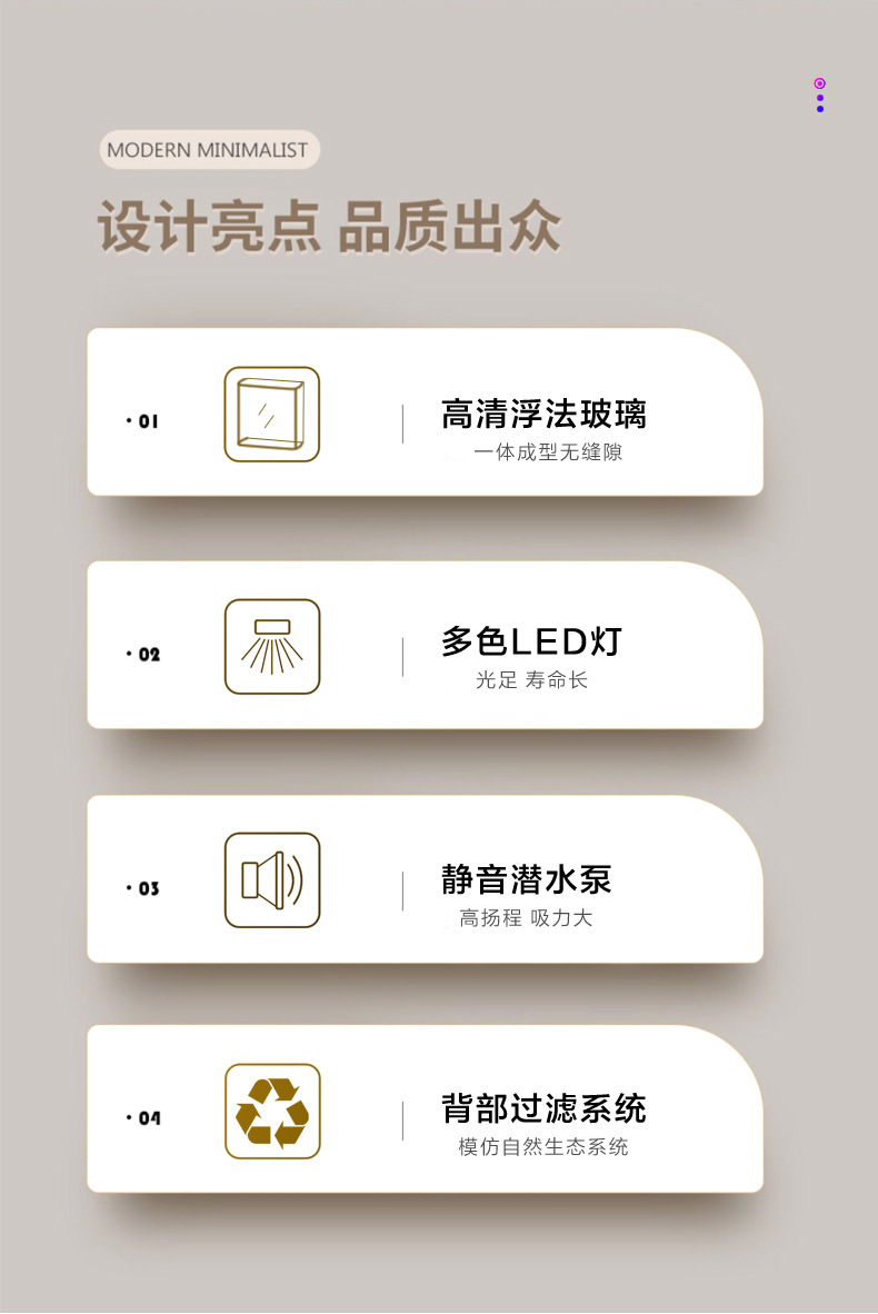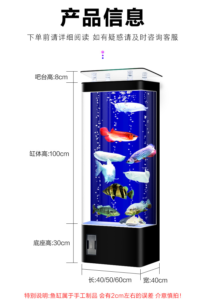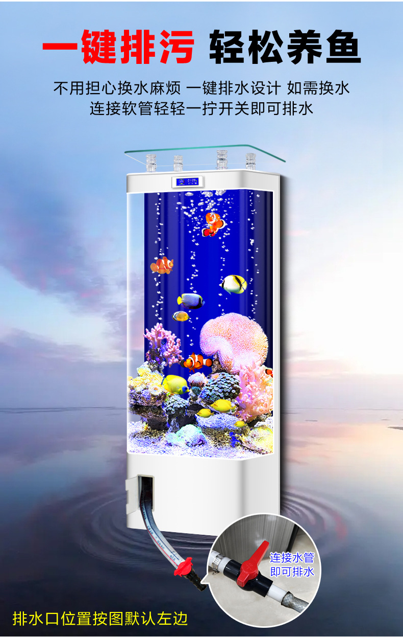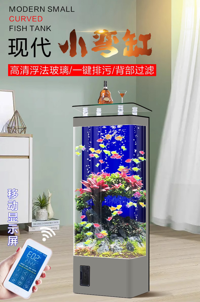 원제조사 어항 거실용 중소형 가정용 바닥형 후면필터 사각형 수직형 물갈이 필요 없는 수족관 베타피쉬