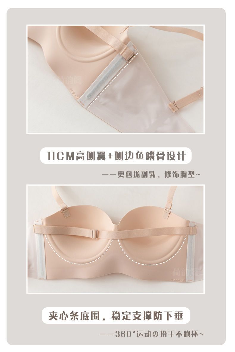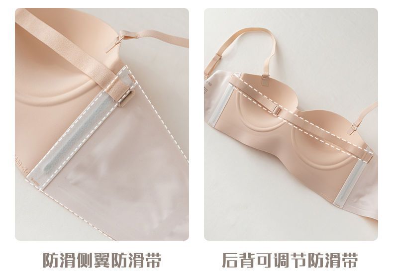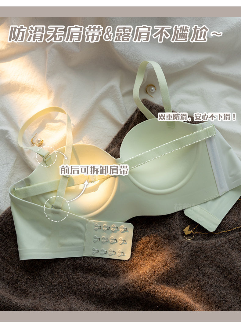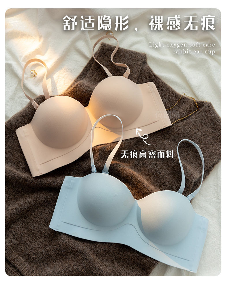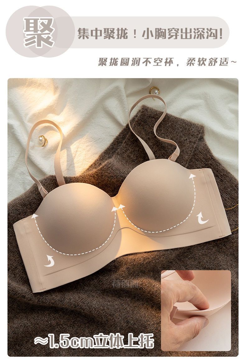 끈이 없는 속옷 여성용 미끄럼 방지 푸시 업 작은 가슴 큰 끈이없는 상단 얇은 하단 두꺼운 비 스틸 링 보이지 않는 브래지어스토어 가기
