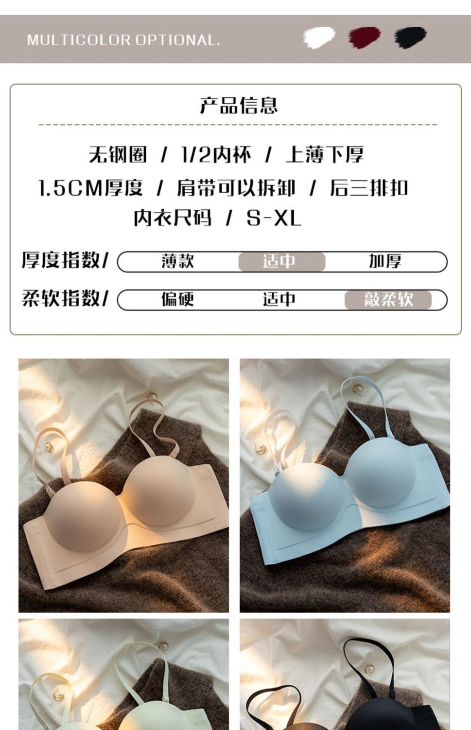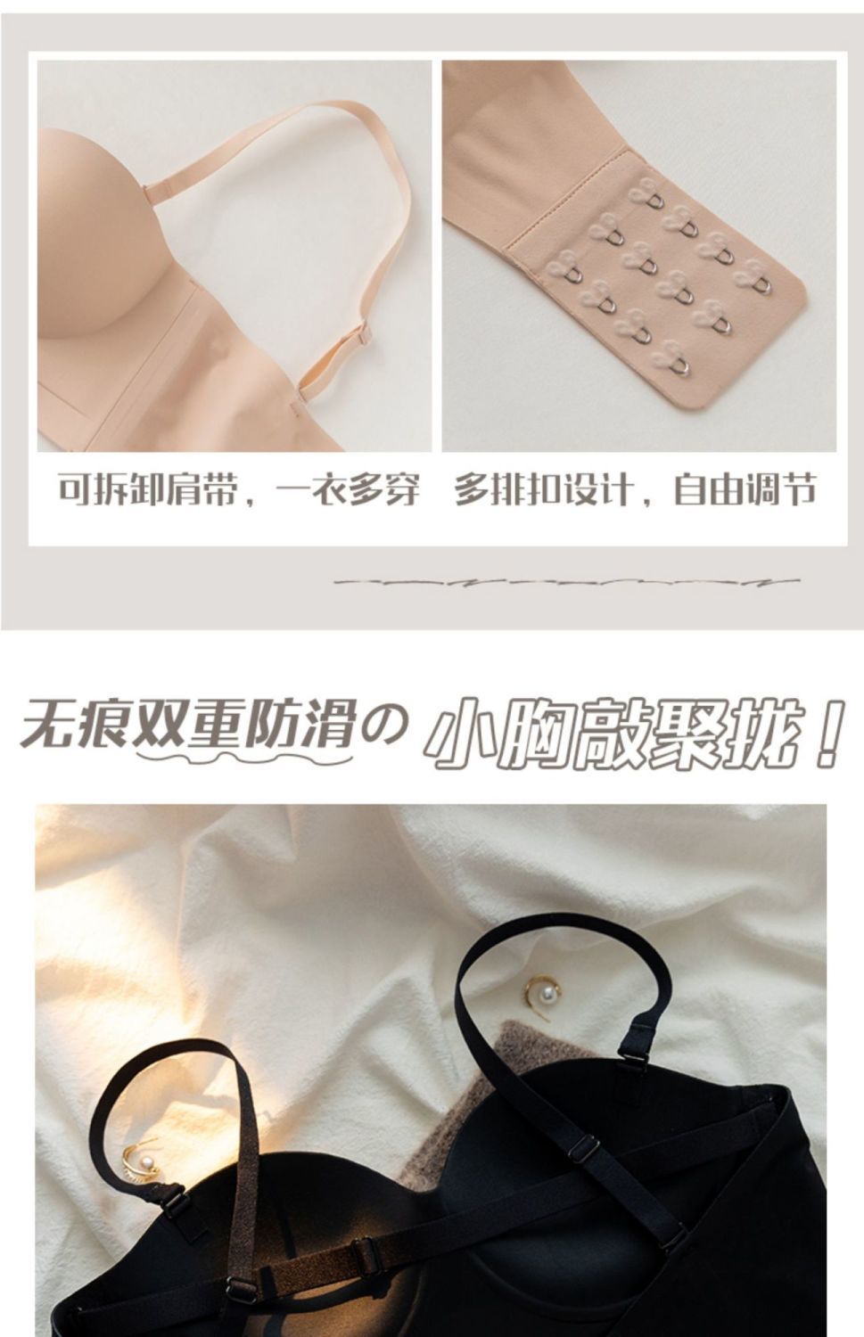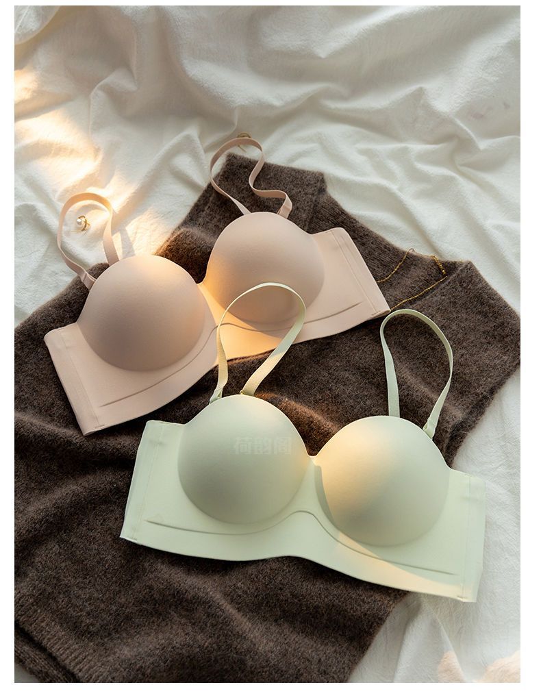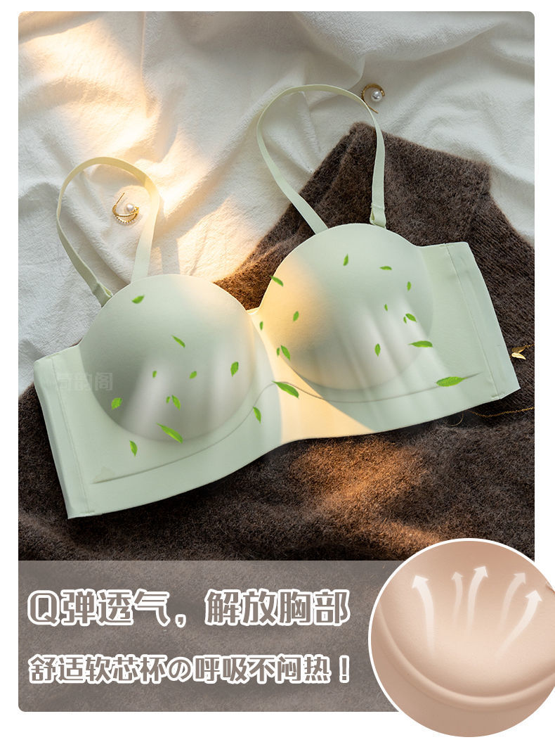 끈이 없는 속옷 여성용 미끄럼 방지 푸시 업 작은 가슴 큰 끈이없는 상단 얇은 하단 두꺼운 비 스틸 링 보이지 않는 브래지어스토어 가기