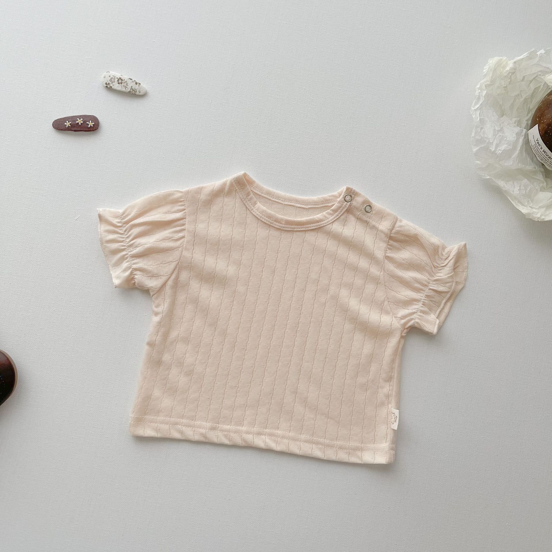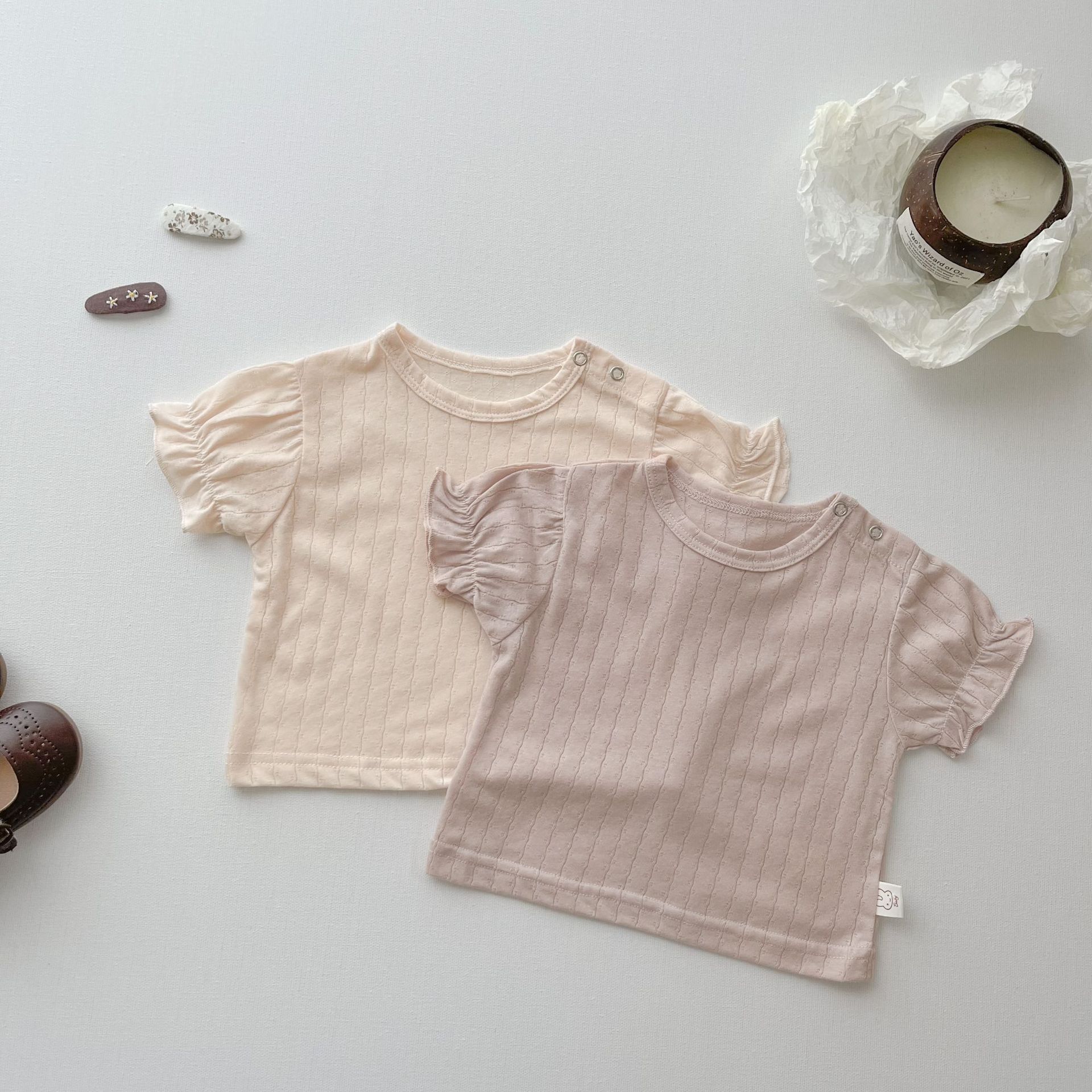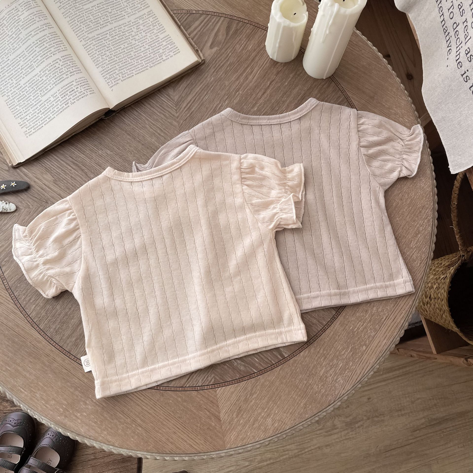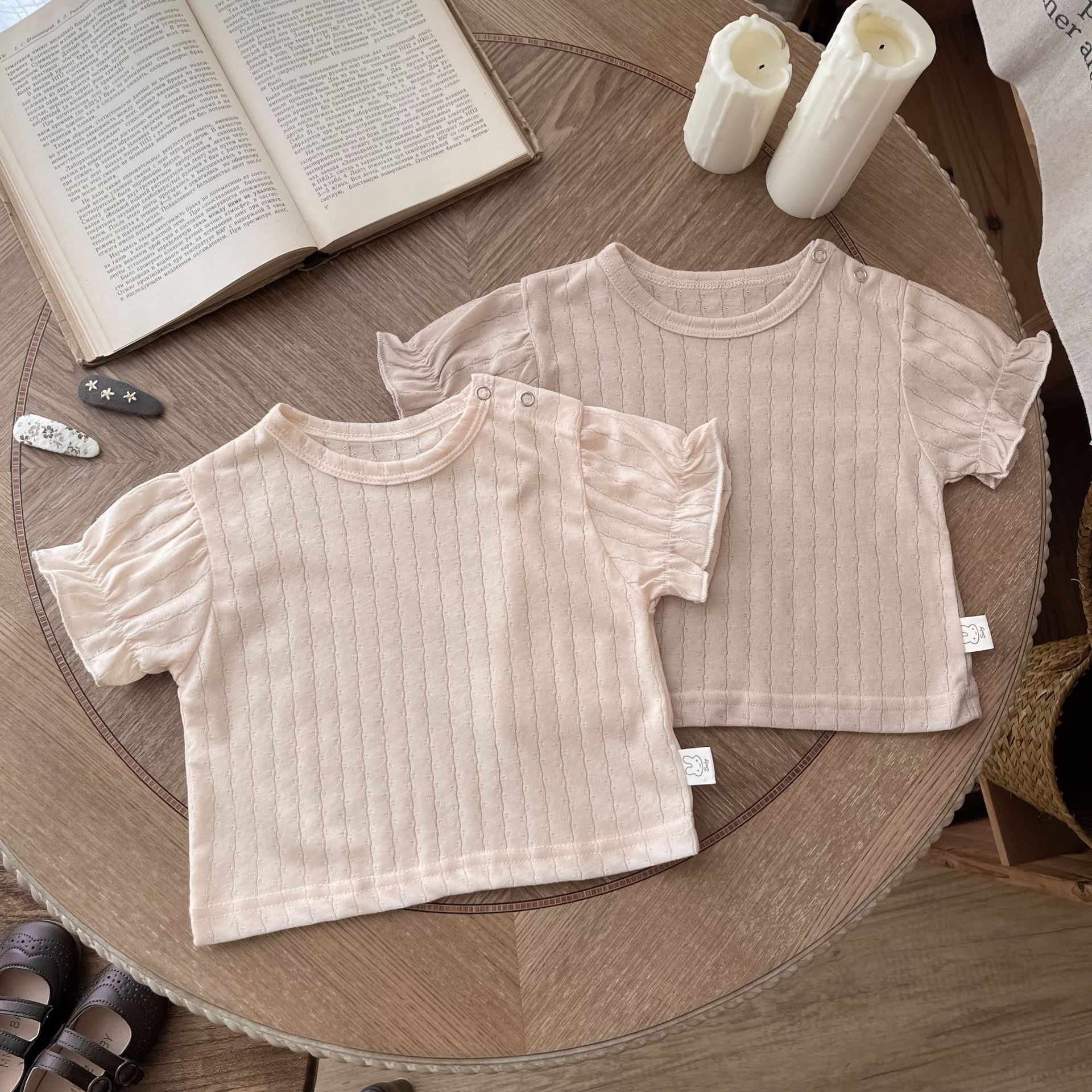 INS 여름 중공 얇은 버블 반팔 티셔츠 아기 소녀 편안한 홈베이스 셔츠