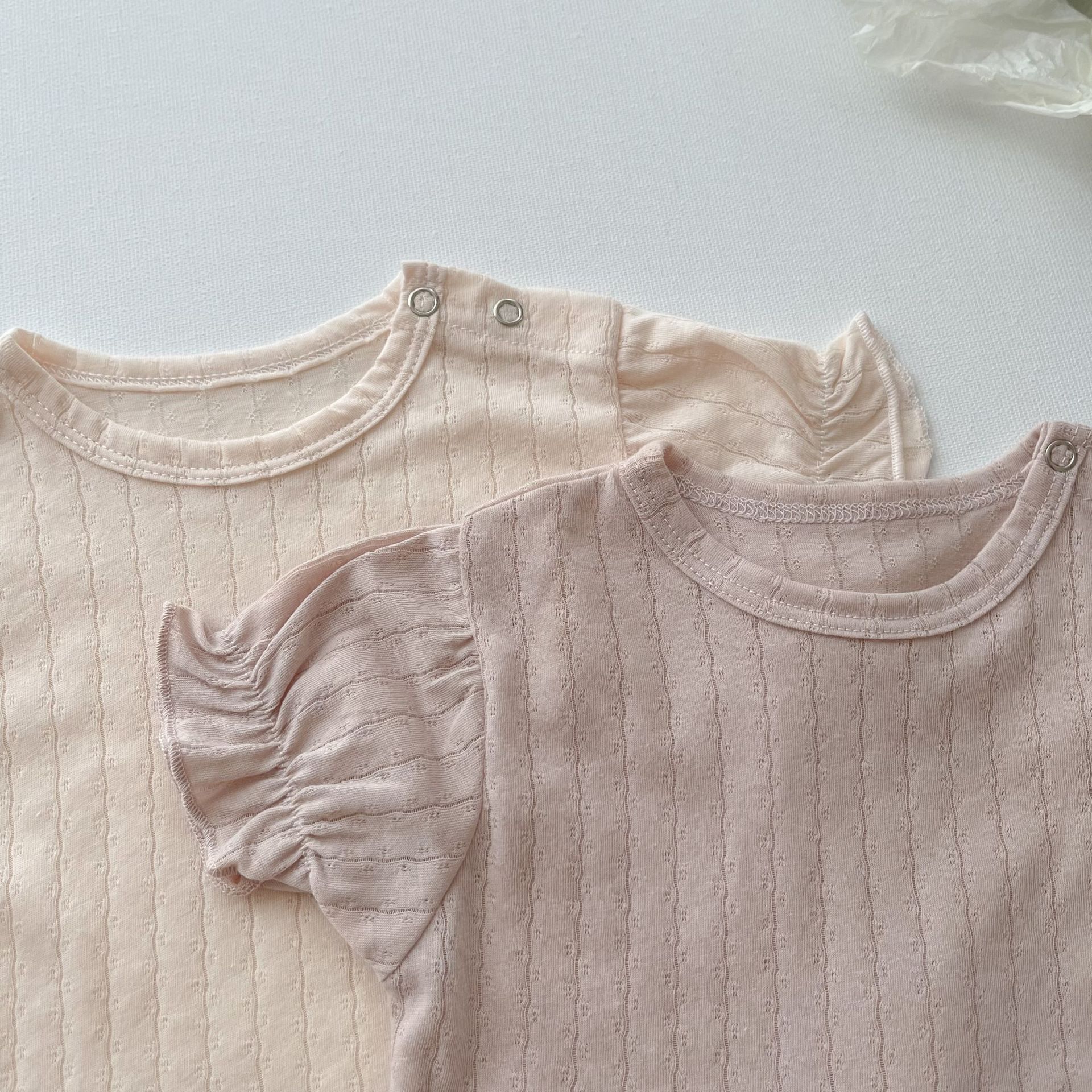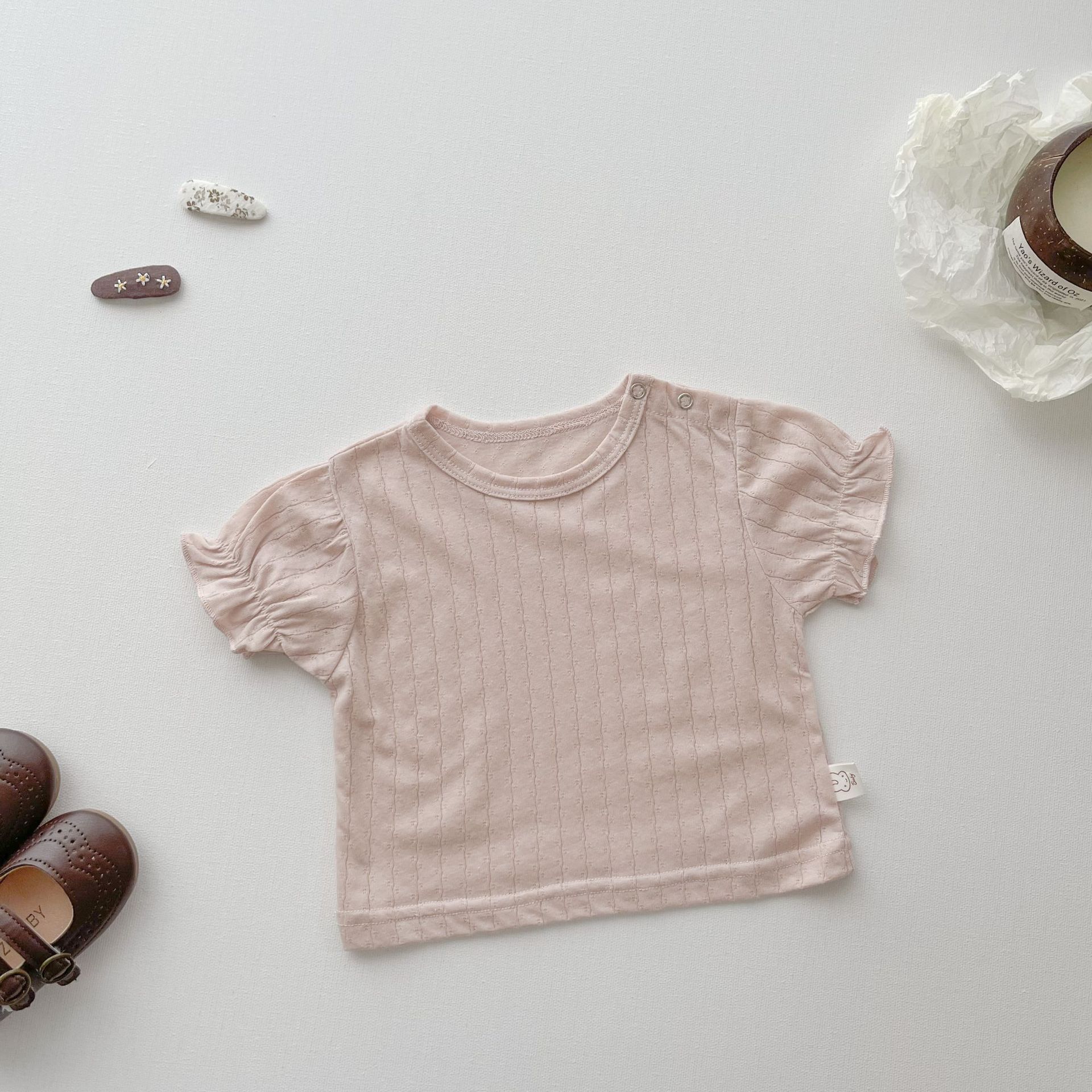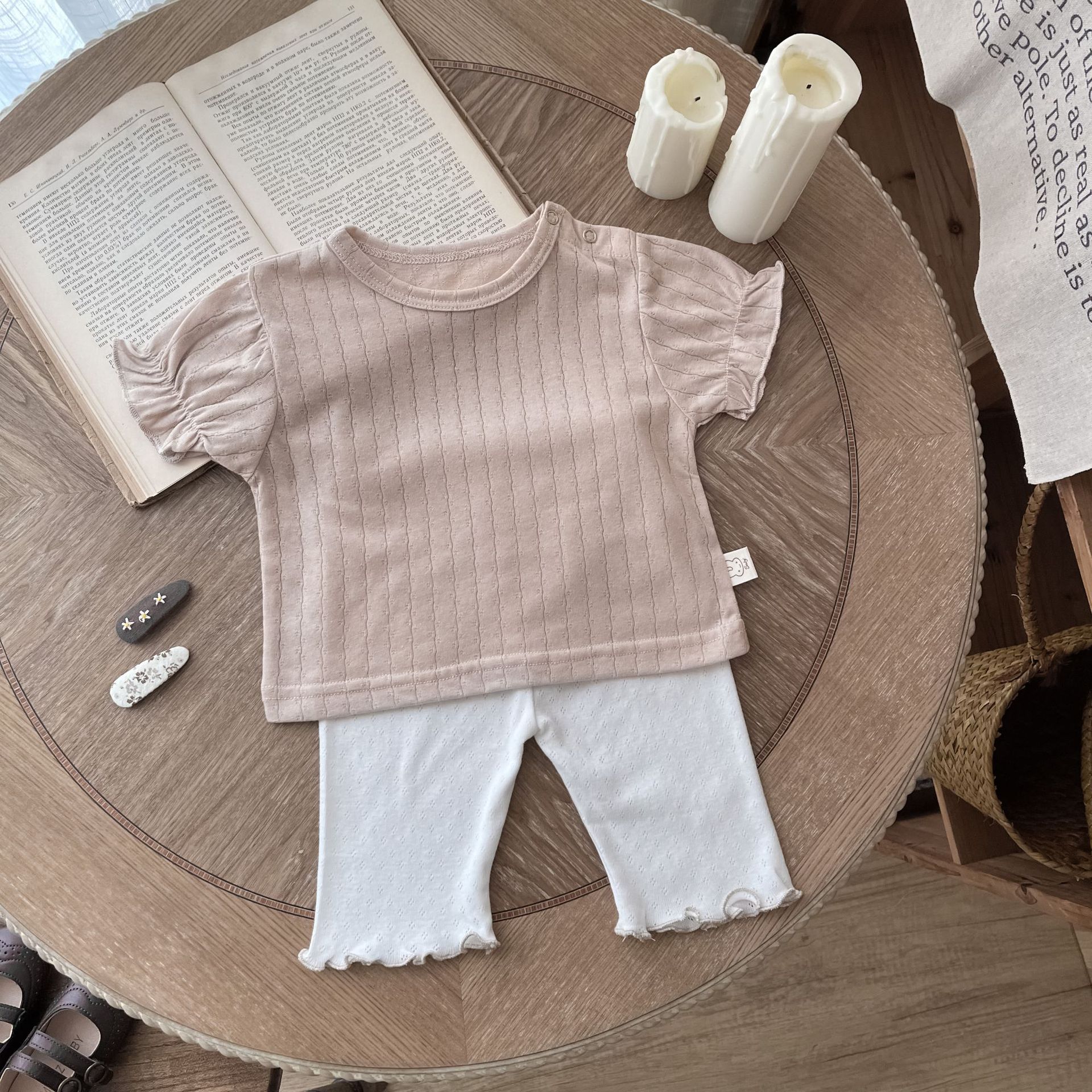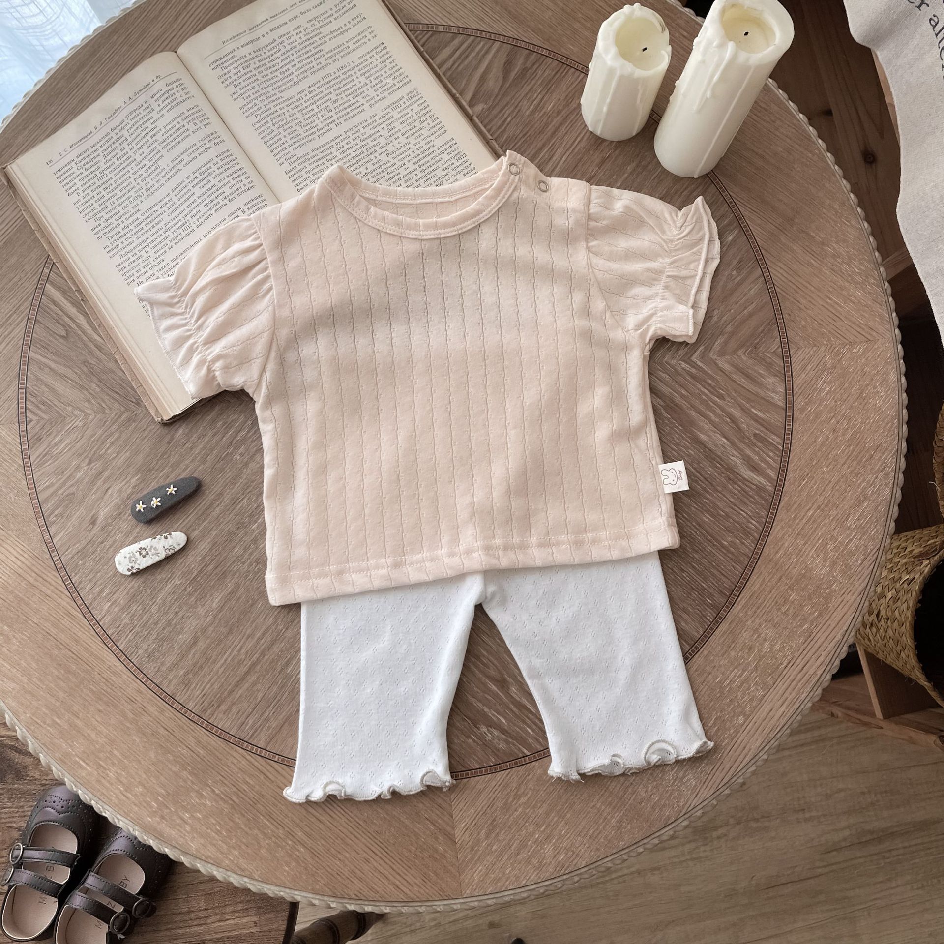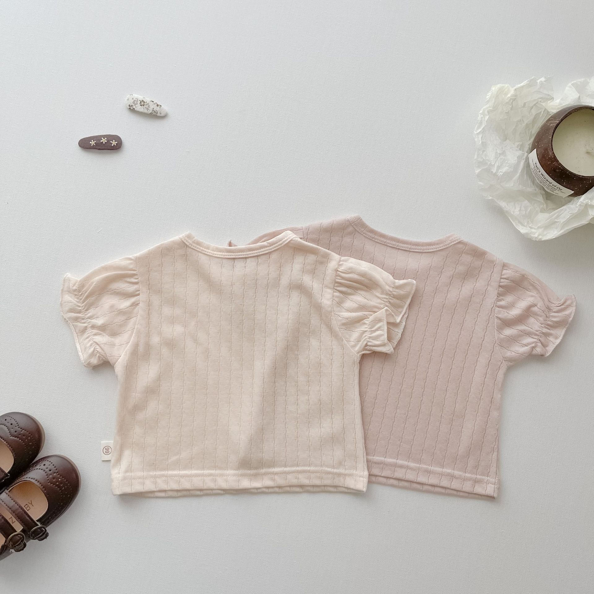 INS 여름 중공 얇은 버블 반팔 티셔츠 아기 소녀 편안한 홈베이스 셔츠