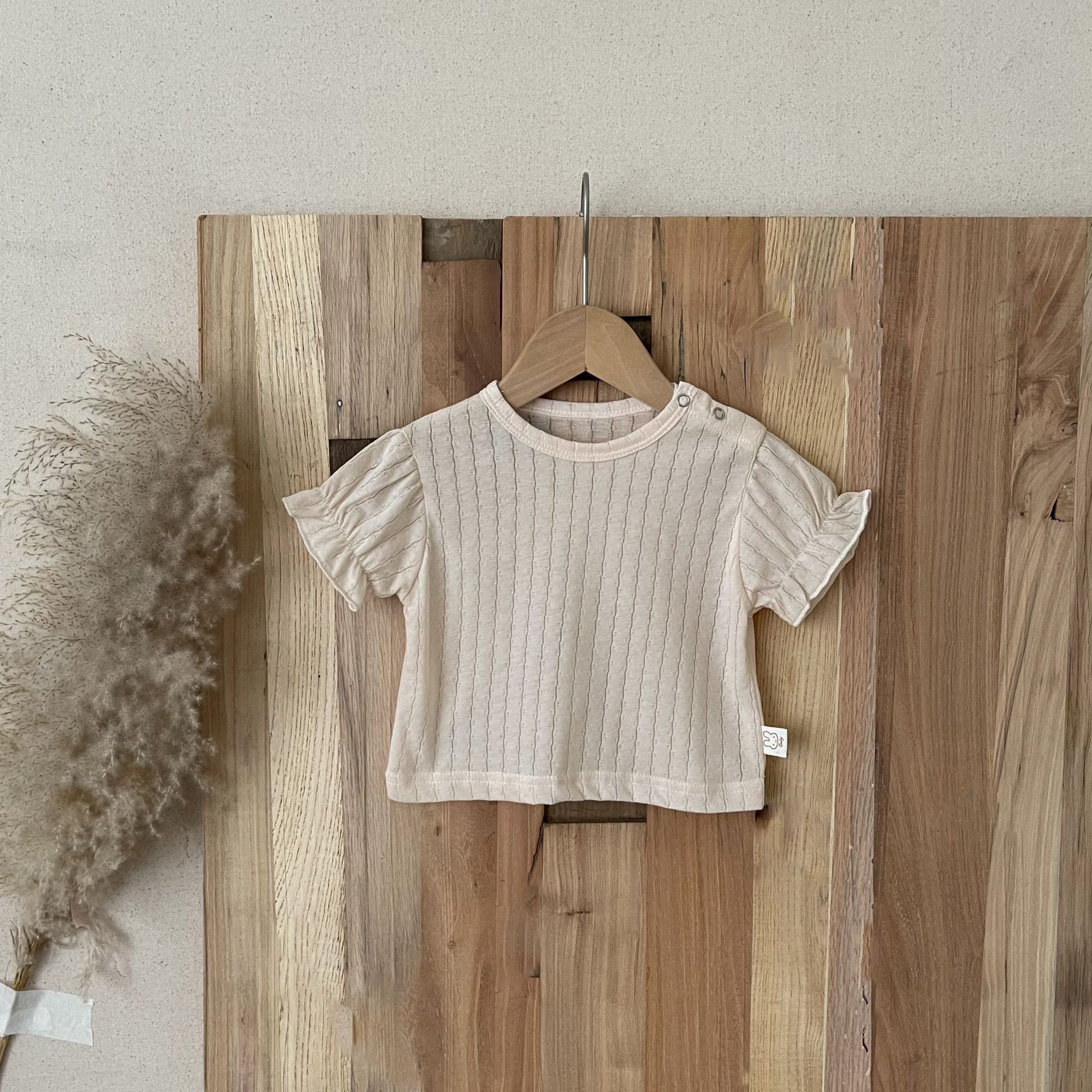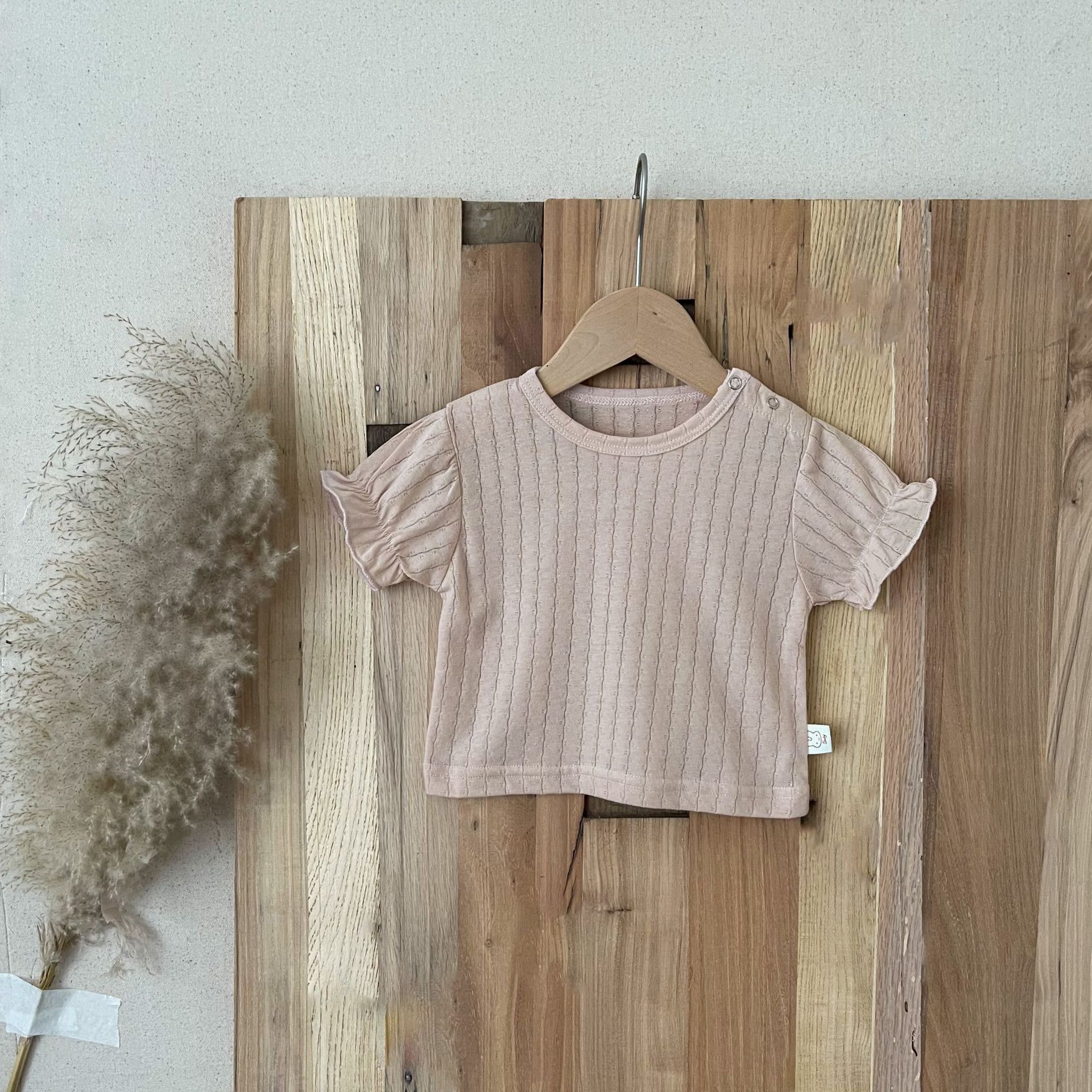 INS 여름 중공 얇은 버블 반팔 티셔츠 아기 소녀 편안한 홈베이스 셔츠스토어 가기