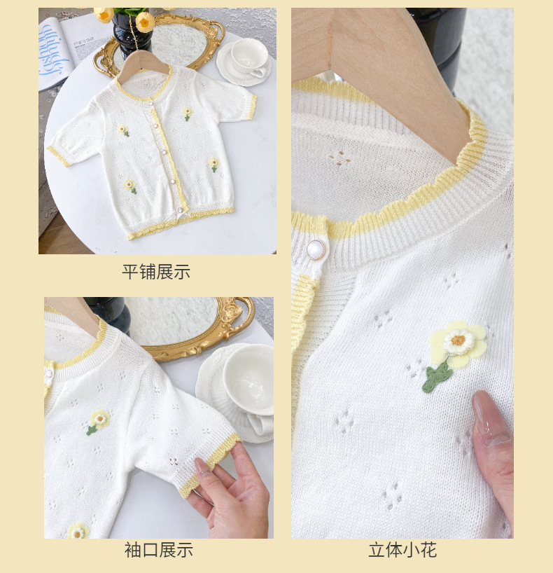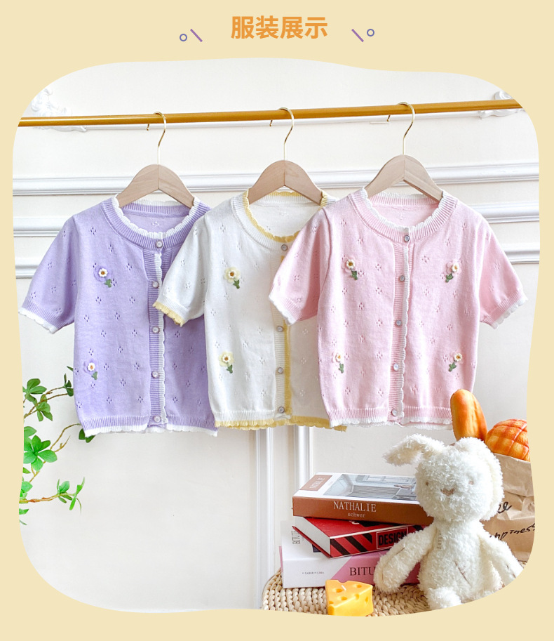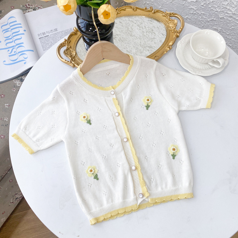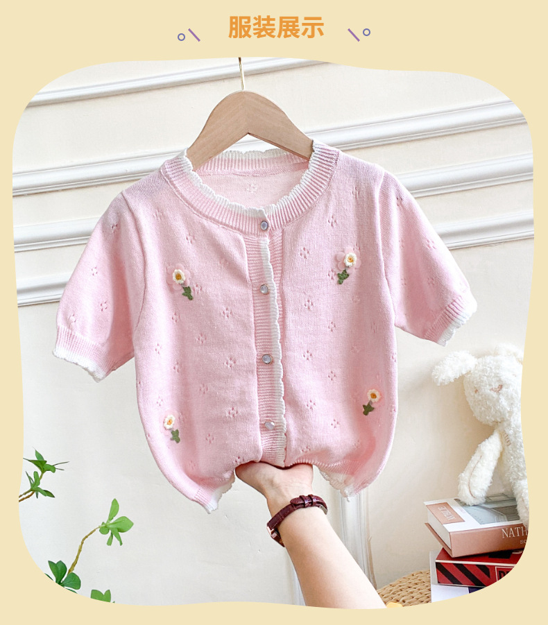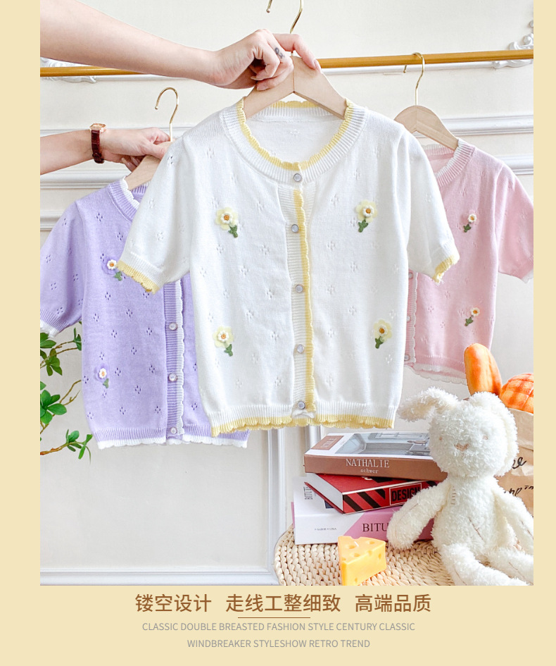 여아 가디건 스웨터 2023 봄 여름 서양식 아동용 니트 중공 순면 가디건 경량 통기성 에어컨 셔츠