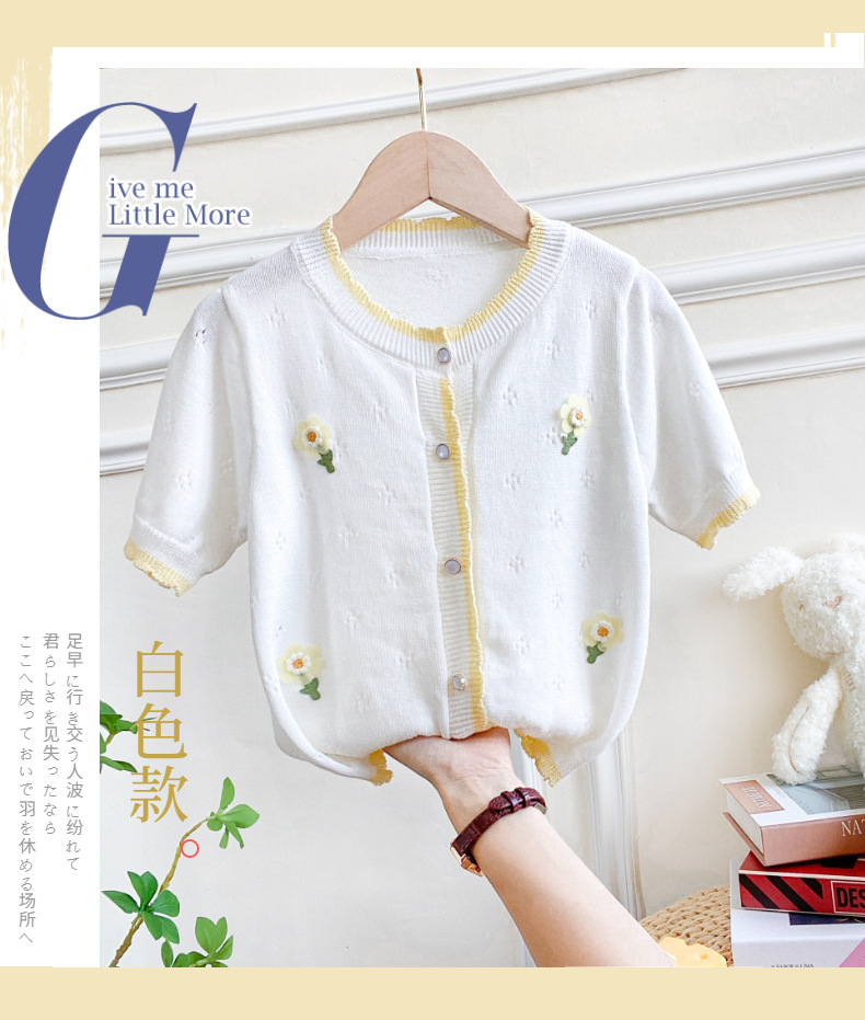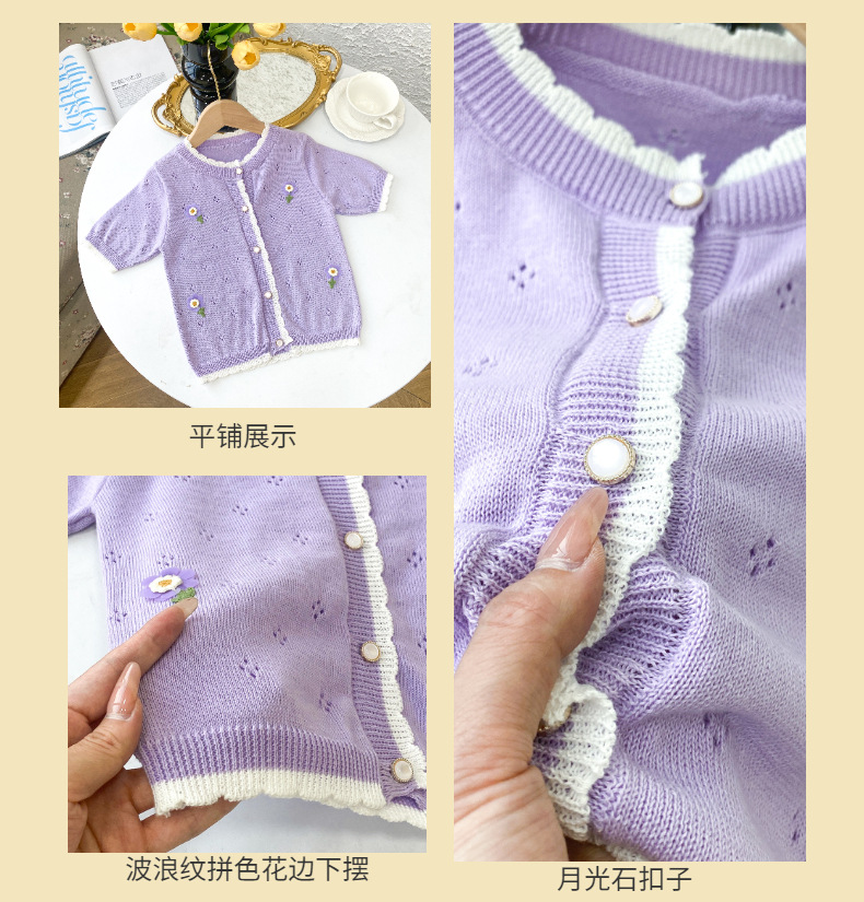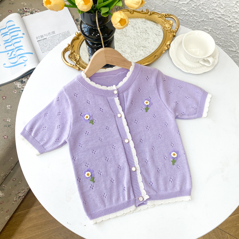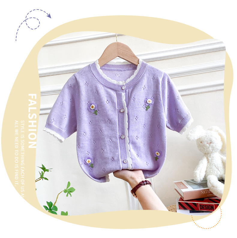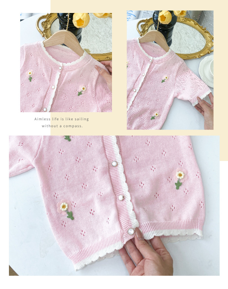 여아 가디건 스웨터 2023 봄 여름 서양식 아동용 니트 중공 순면 가디건 경량 통기성 에어컨 셔츠