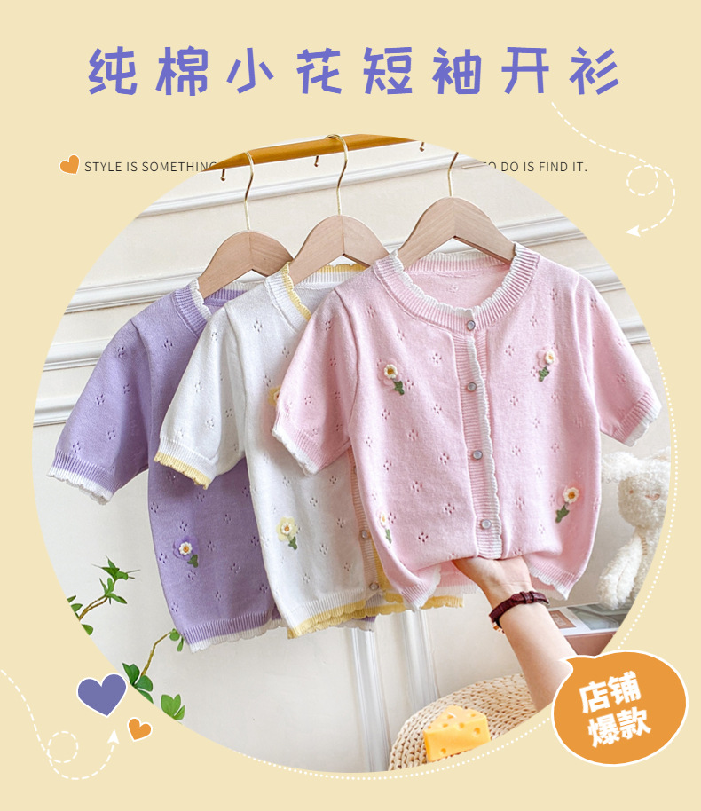 여아 가디건 스웨터 2023 봄 여름 서양식 아동용 니트 중공 순면 가디건 경량 통기성 에어컨 셔츠스토어 가기