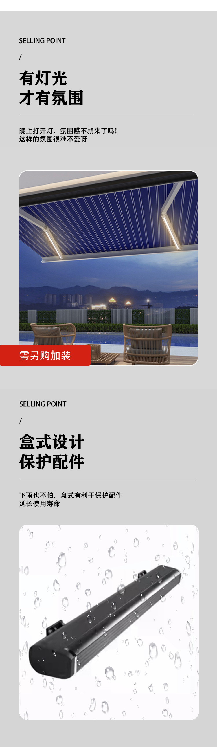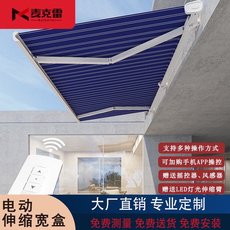 중산 야외 자외선 차단 자동 개폐식 차양막 발코니 차양 접이식 빌라 수축형 차양 알루미늄 합금