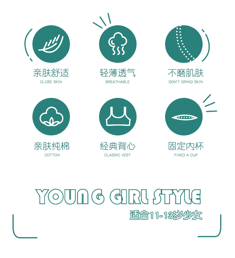 순면 통기성 학생 소녀의 브래지어 스포츠 충격 방지 달리기 가벼운 속옷 통합 고정 컵 브래지어 조끼 얇은