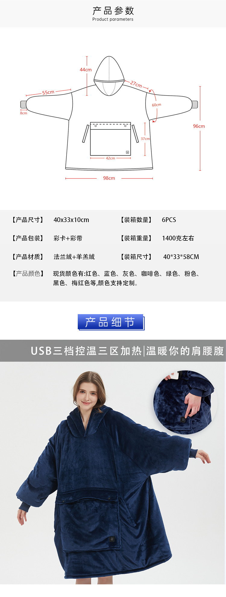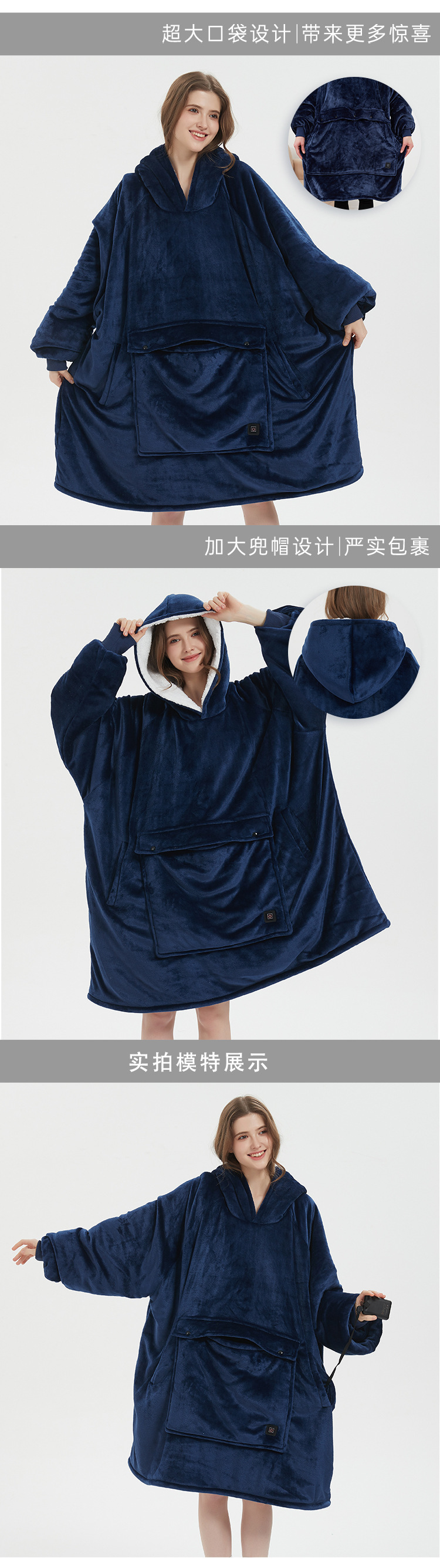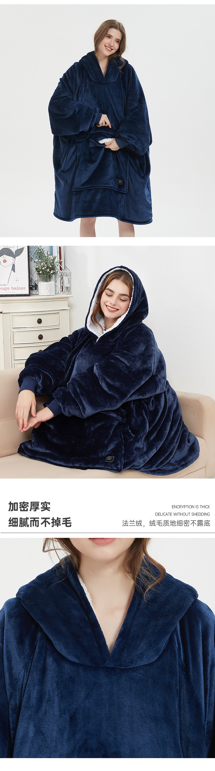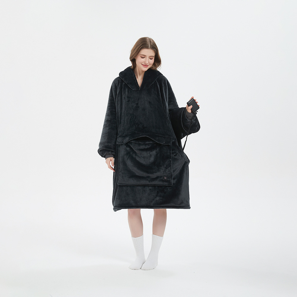 후드티 야외 USB 가열 담요 후드 게으른 담요 플란넬 더블 레이어 두꺼운 커플 게으른 잠옷