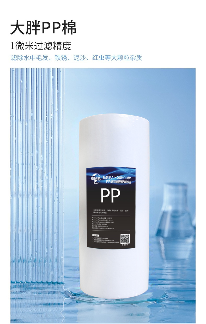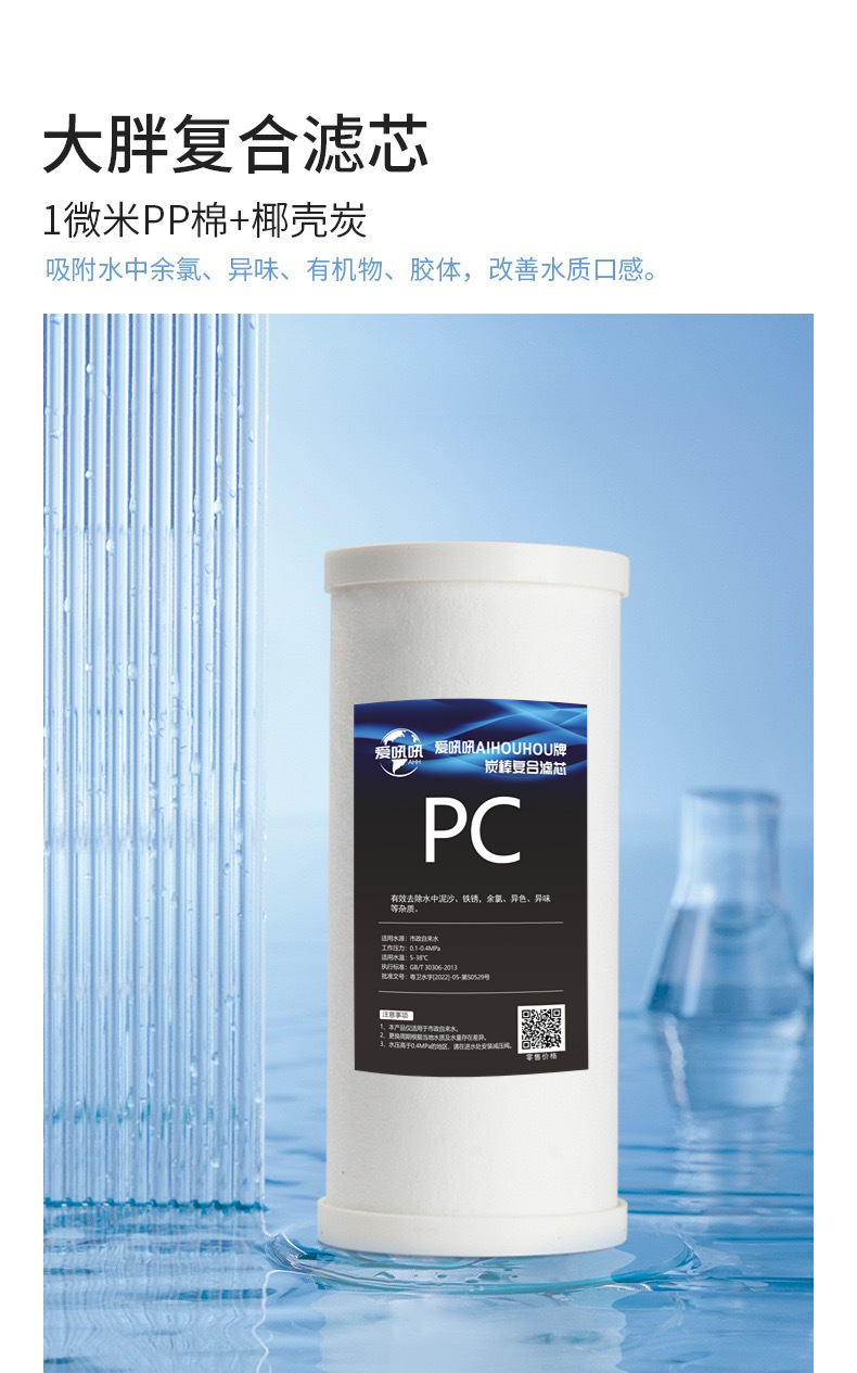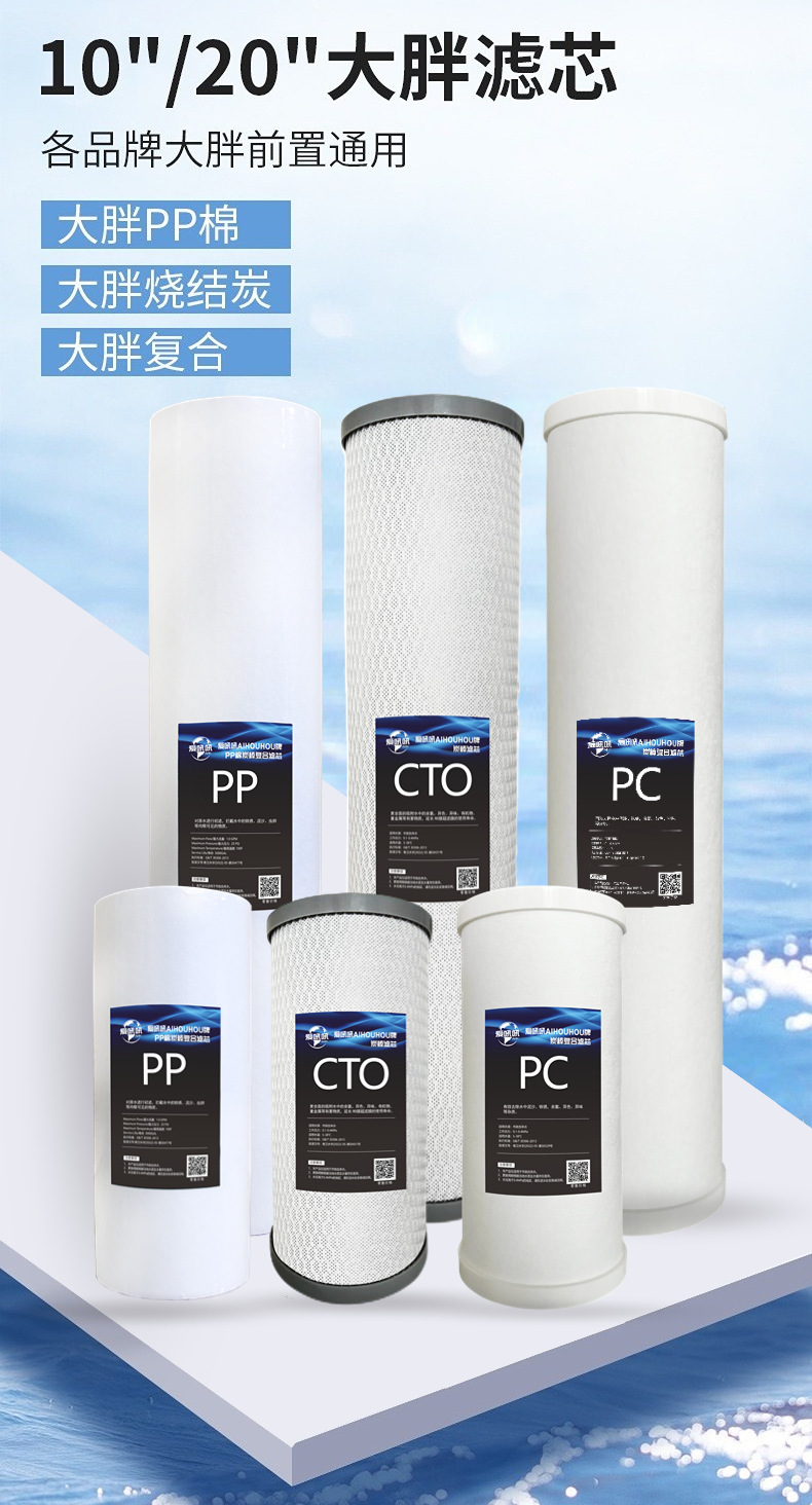 • 10 인치 큰 지방 pp 면 코코넛 껍질 소결 탄소 복합 필터 요소 (대만에서 수입)