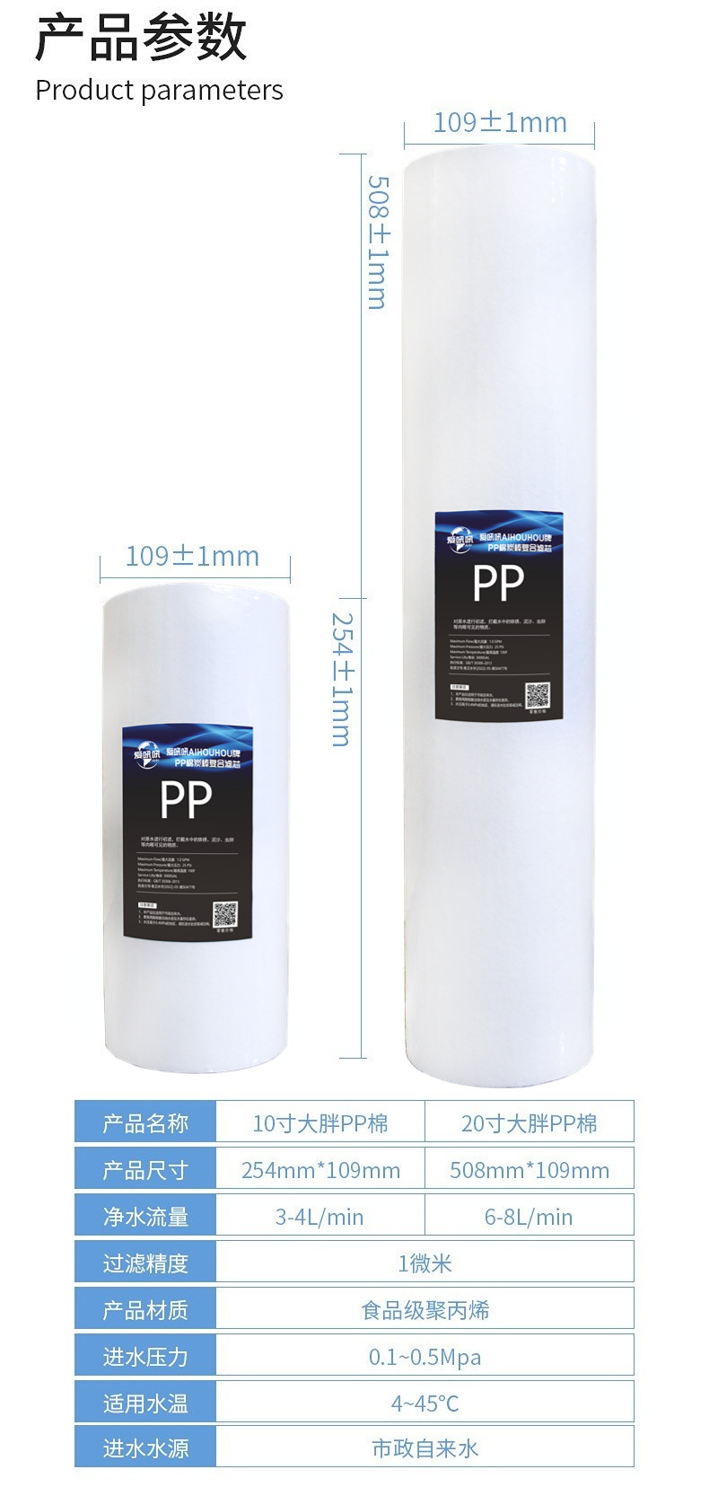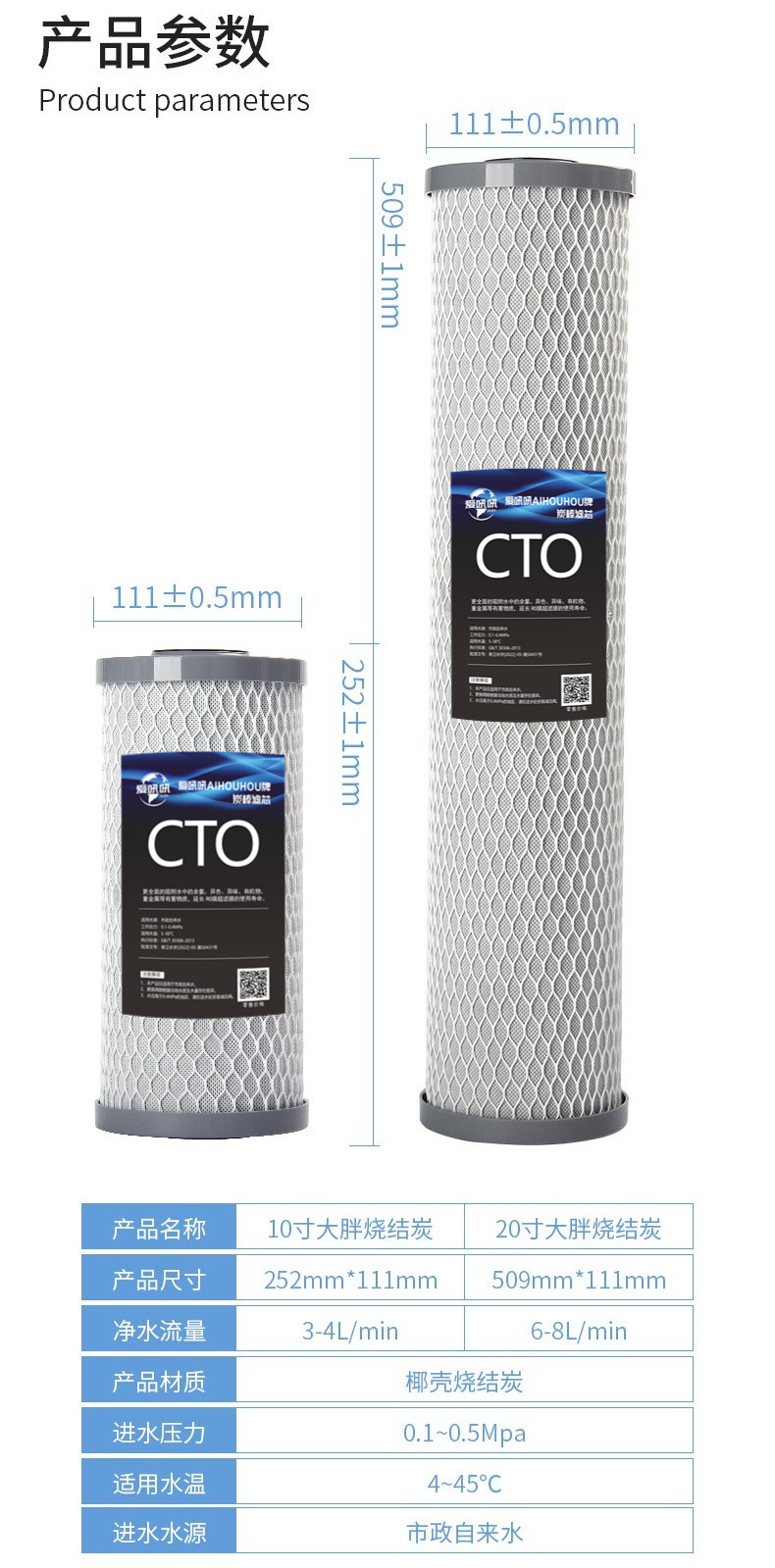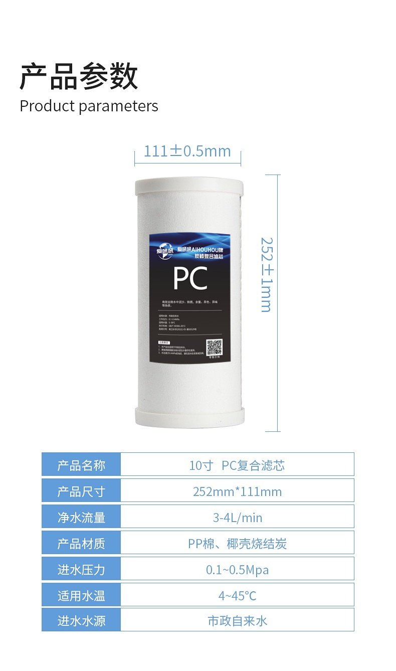 • 10 인치 큰 지방 pp 면 코코넛 껍질 소결 탄소 복합 필터 요소 (대만에서 수입)