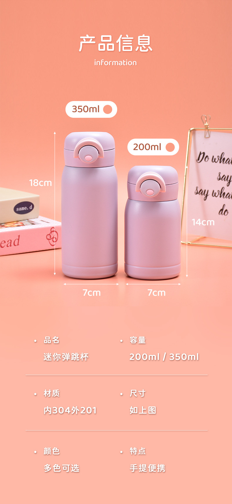 간단한 Ins 스타일 미니 포켓 완두콩 컵 304 스테인레스 스틸 튀는 컵 남자와 여자의 높은 색상 가치 휴대용 보온병 컵스토어 가기