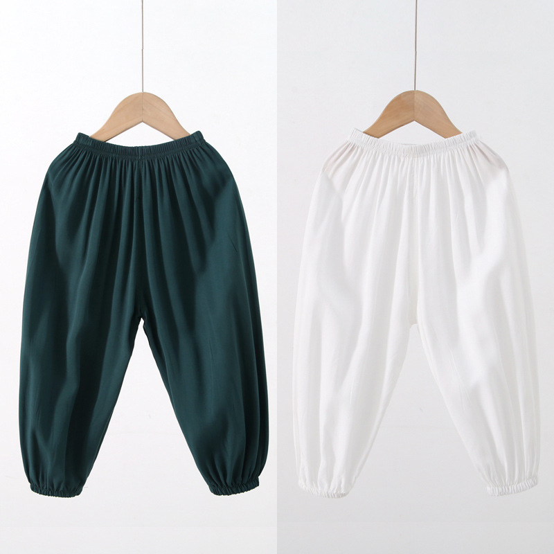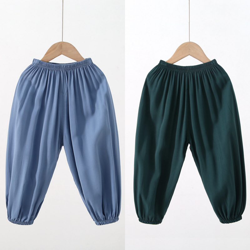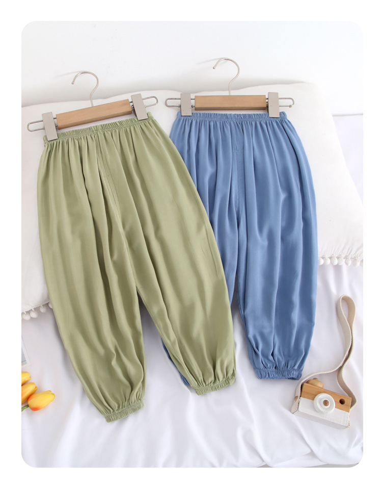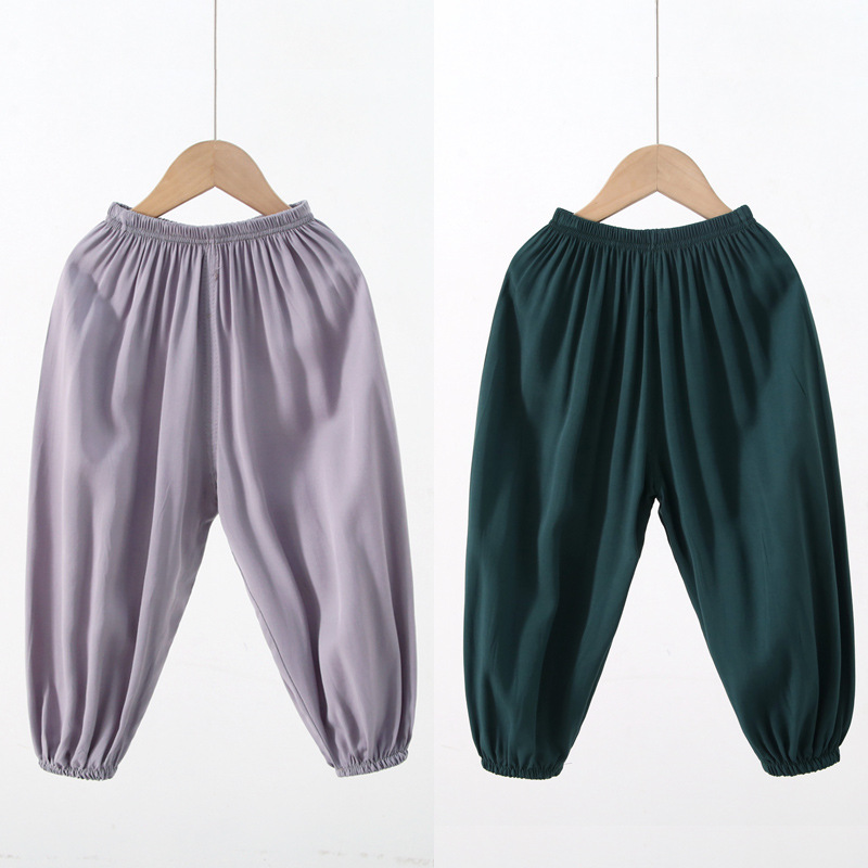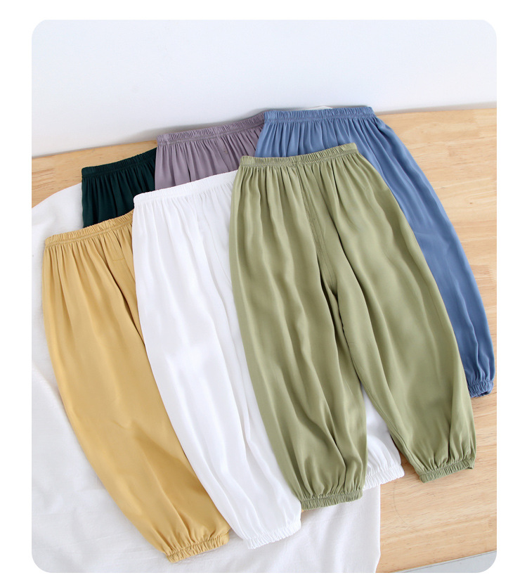 어린이 모기 방지 바지 아이스 실크 여름 얇은 중소 어린이 아기 여아 랜턴 바지 소년 홈 바지 잠옷 바지 소년