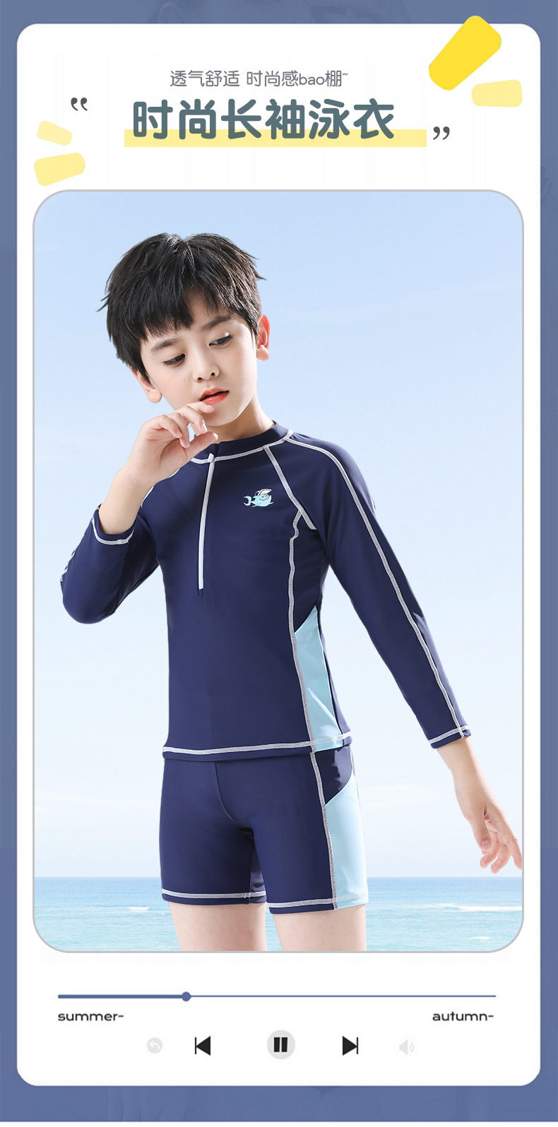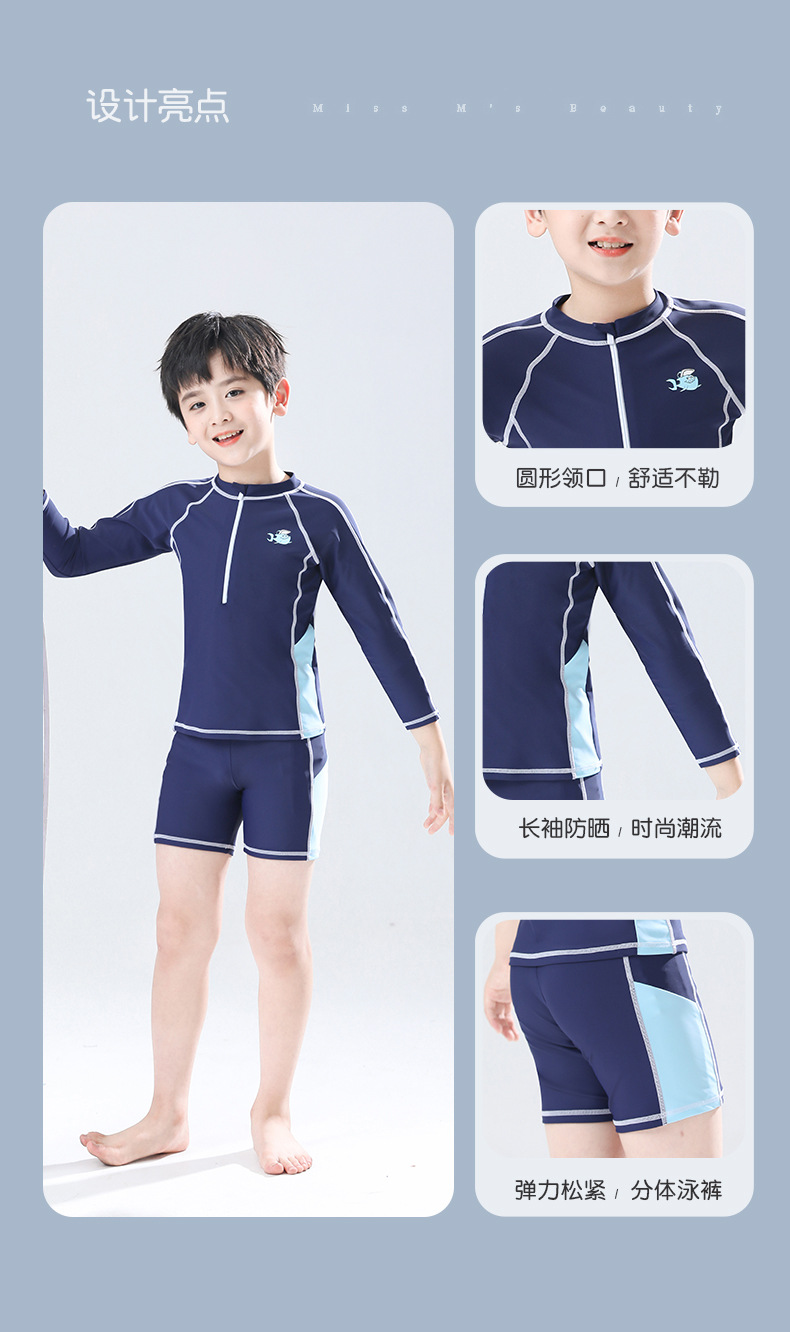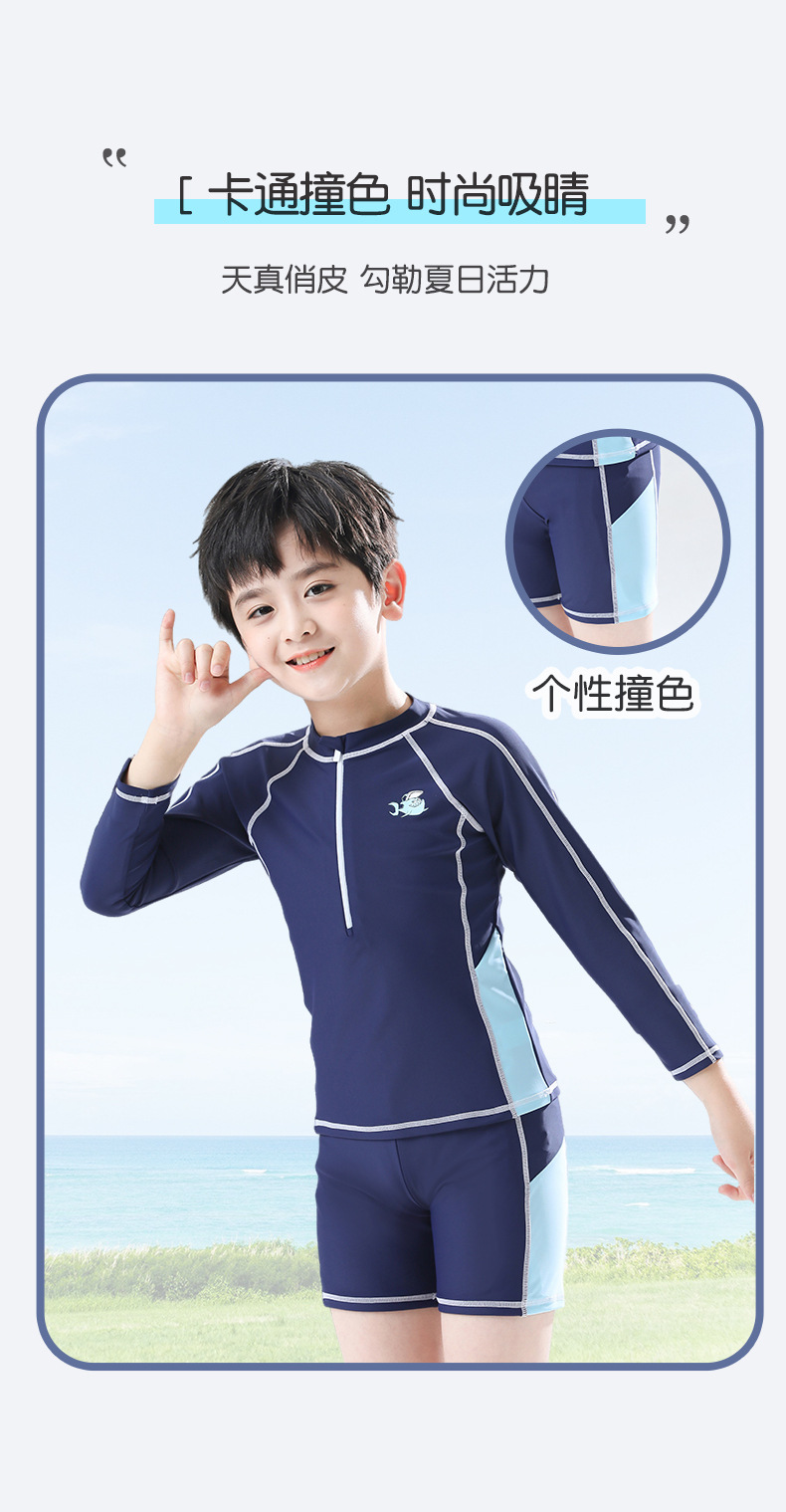 어린이 수영복 남아 소형 중대형 어린이 귀여운 만화 분할 긴 소매 태양 방지 속건 수영복 여름 수영복스토어 가기