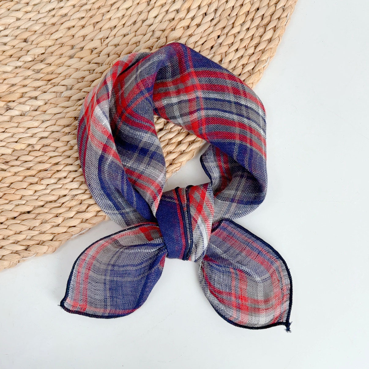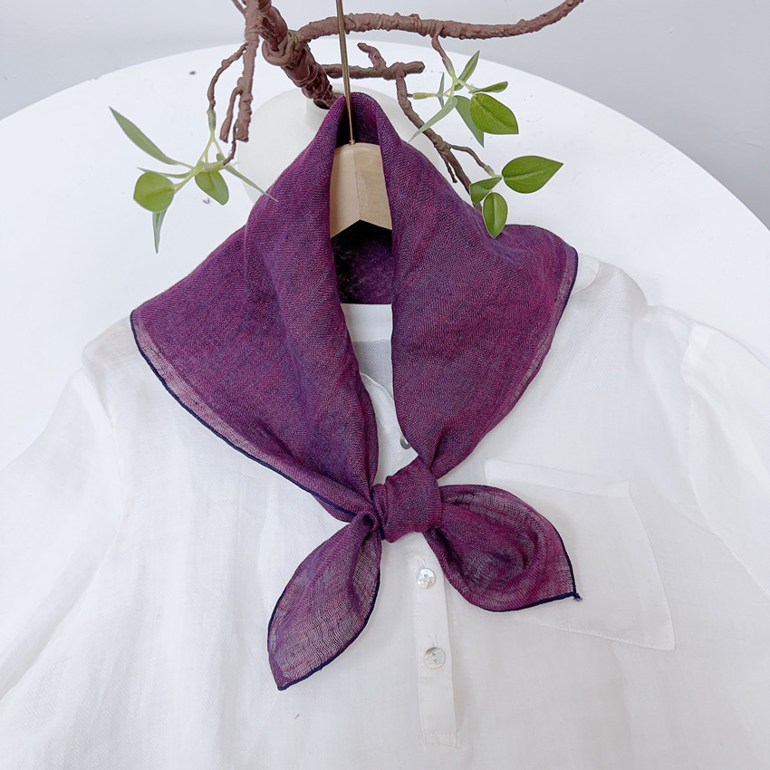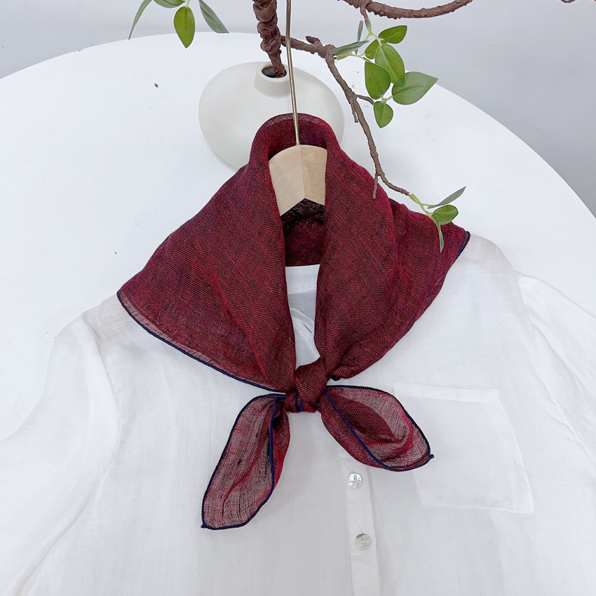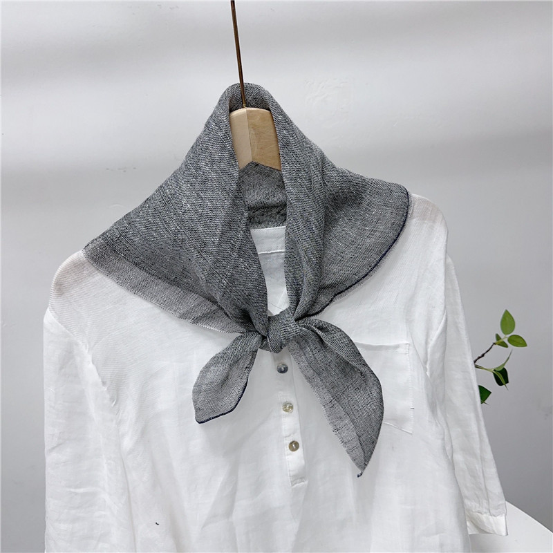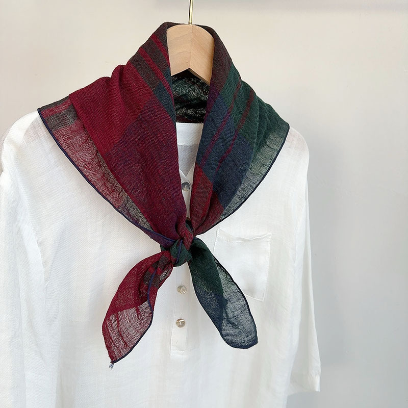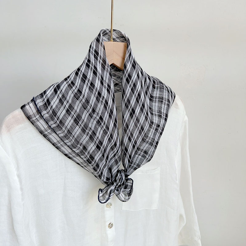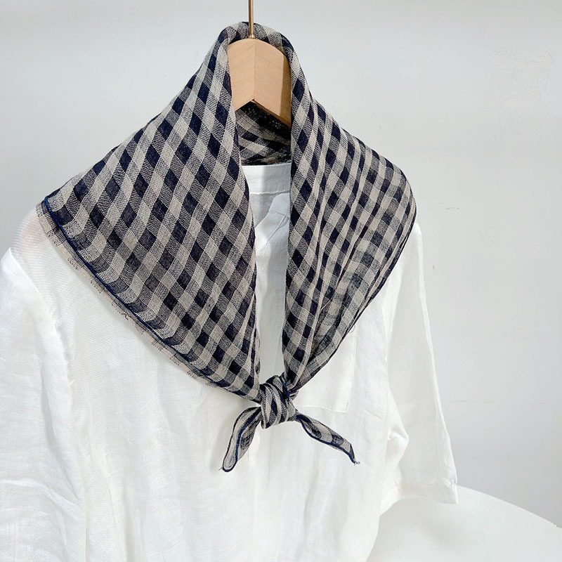 봄과 여름 빈티지 작은 격자 무늬 린넨 스퀘어 스카프 예술적 모든 매치 여성용 여름 목 보호 작은 실크 스카프 스카프 액세서리 신제품스토어 가기