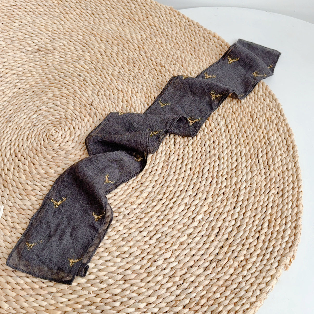 • 큰 배꼽 거즈 스퀘어 스카프-블랙 58*60cm