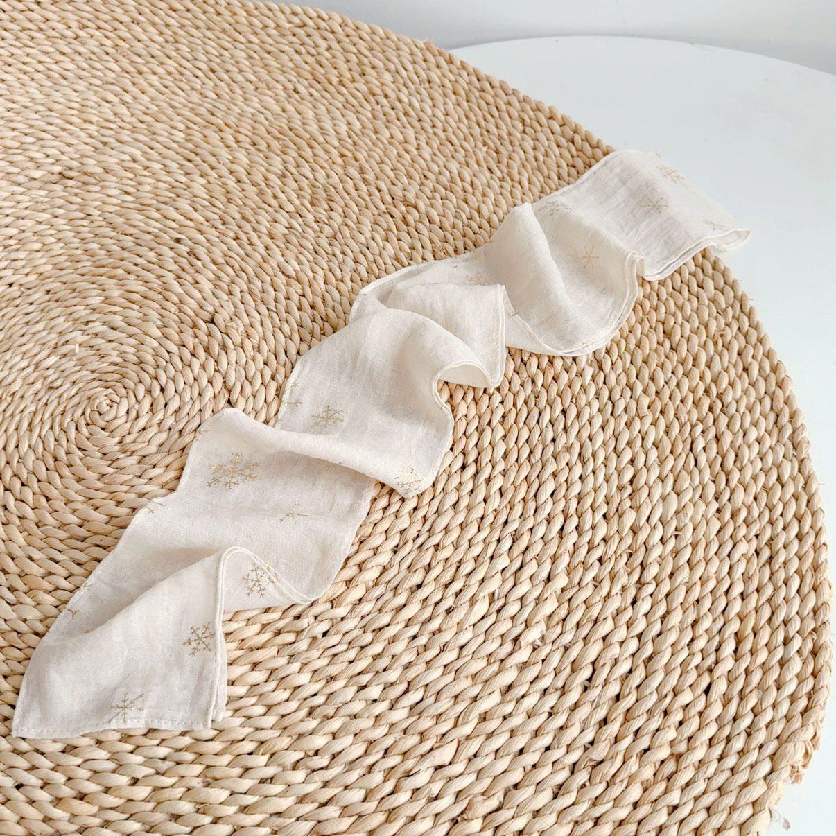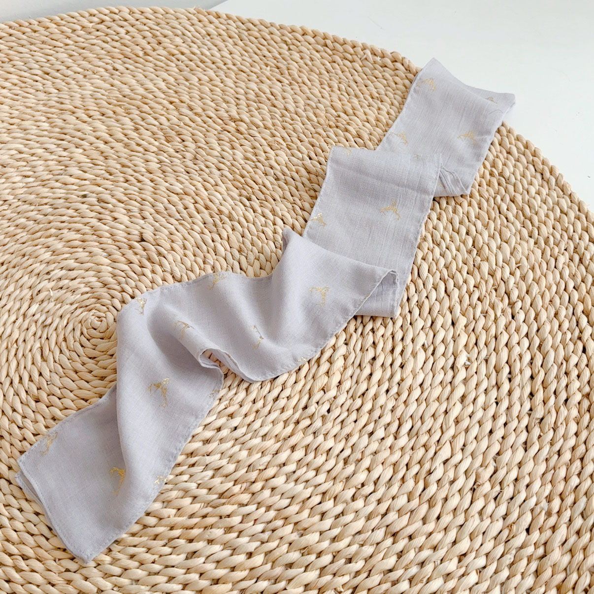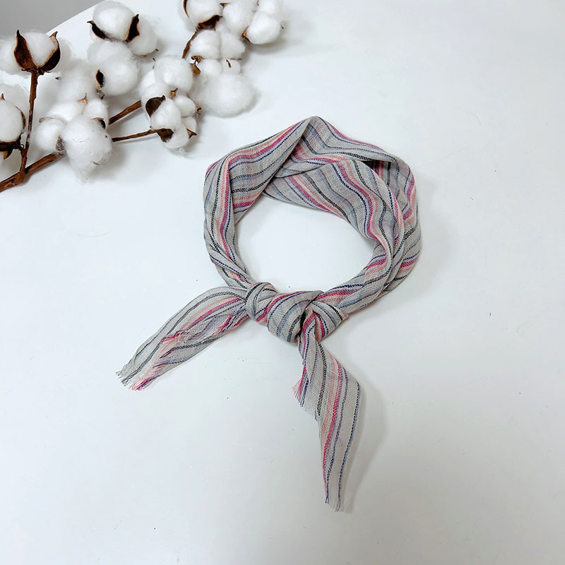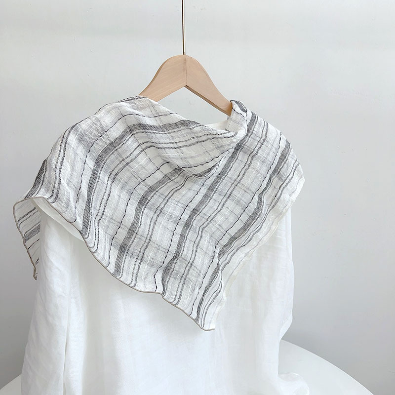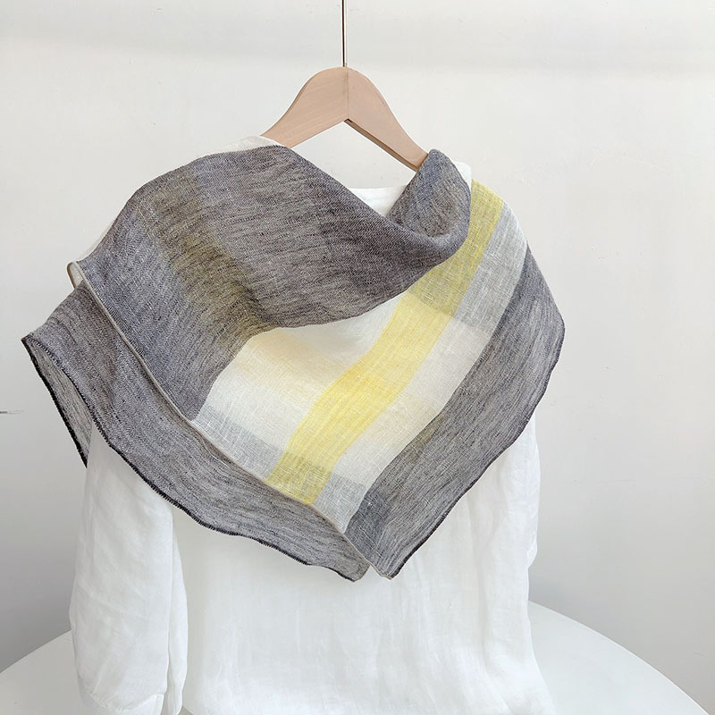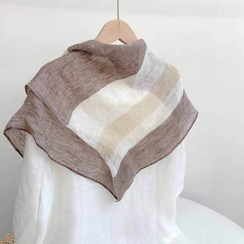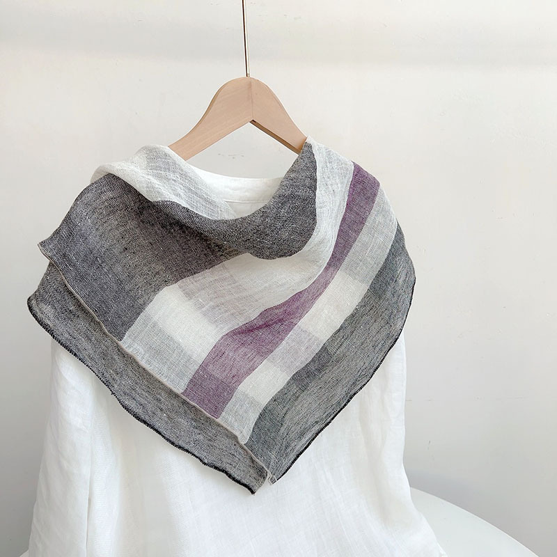 • 리넨 스퀘어 스카프---비와 이슬 줄무늬 70*64cm