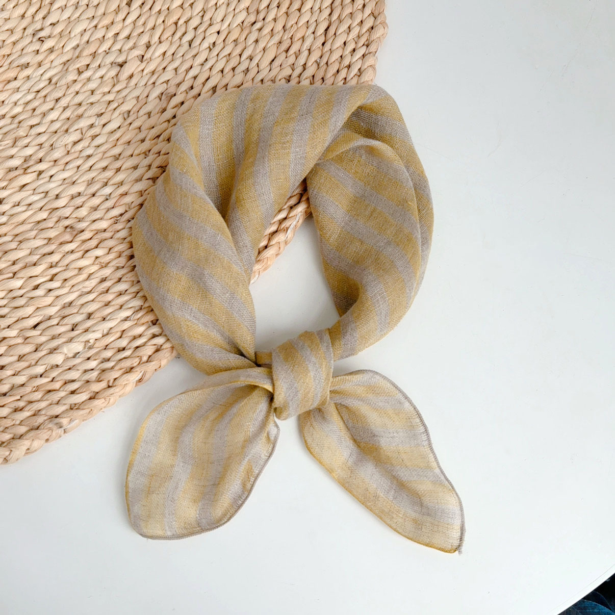 • 리넨 스퀘어 스카프---노란색 줄무늬 70*67cm