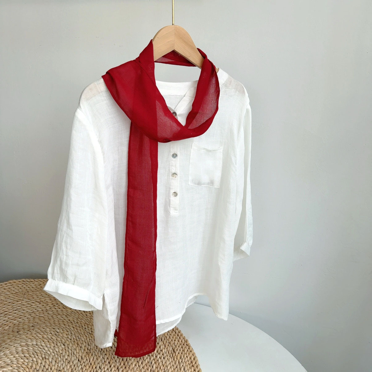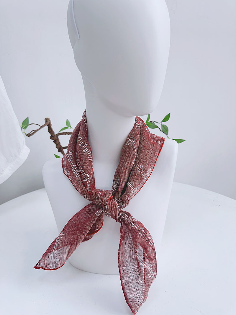 • 큰 배꼽 거즈 스퀘어 스카프-로즈 레드 58*60cm