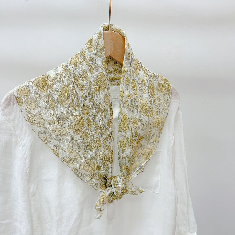 • 린넨 대나무 프린트 스퀘어 스카프 65*65cm