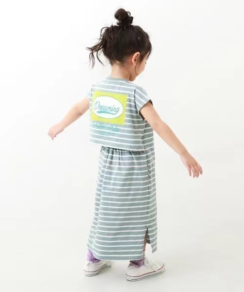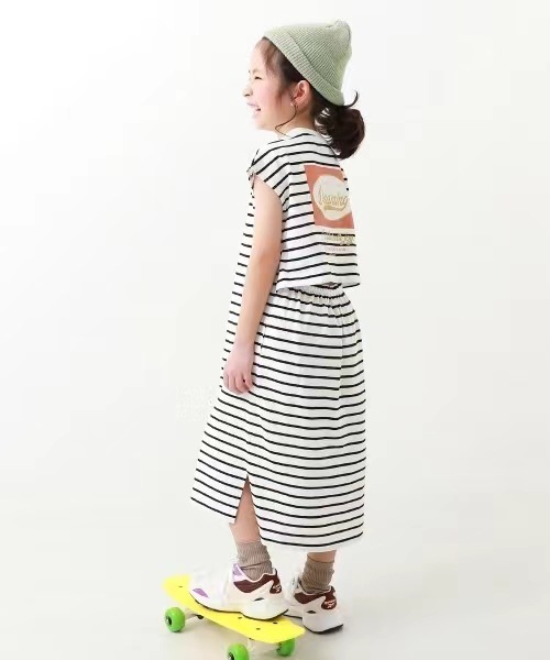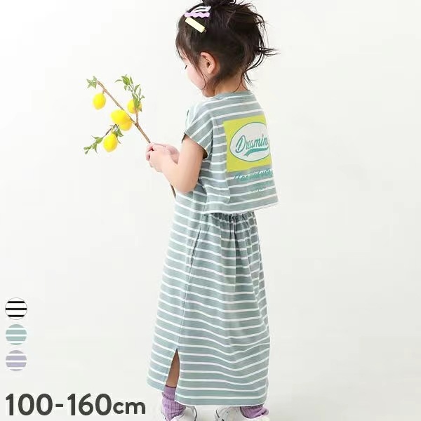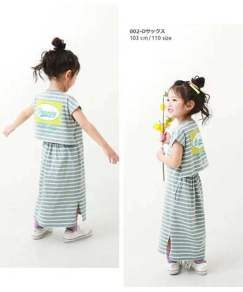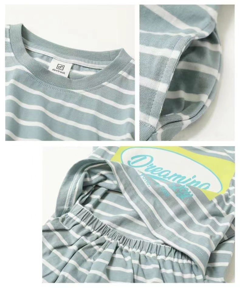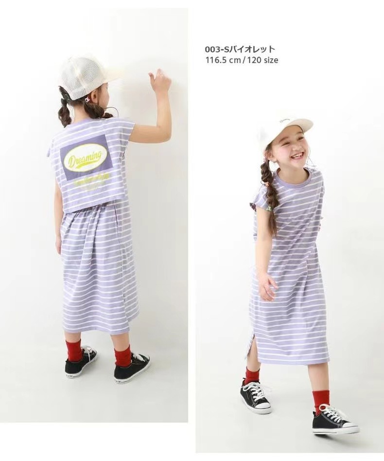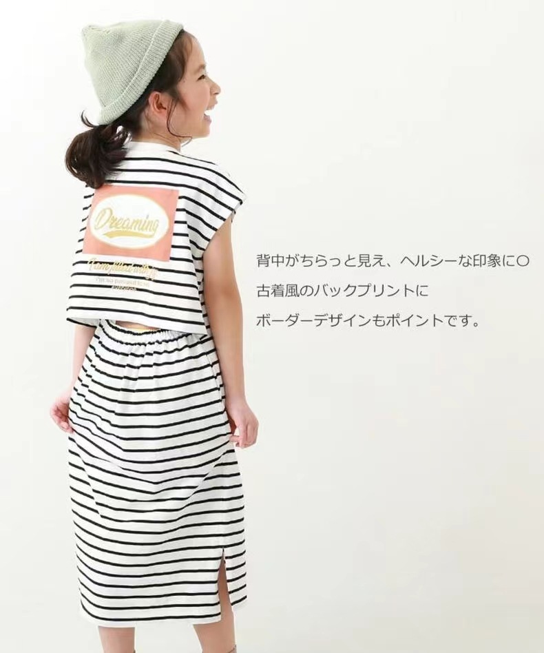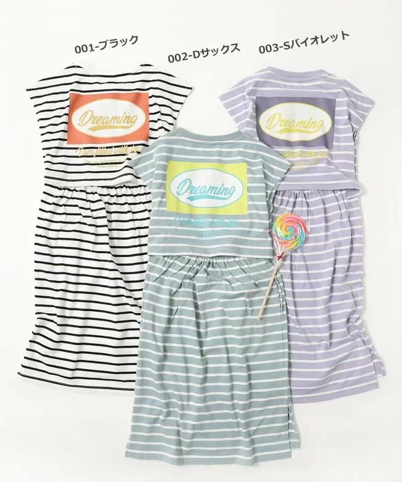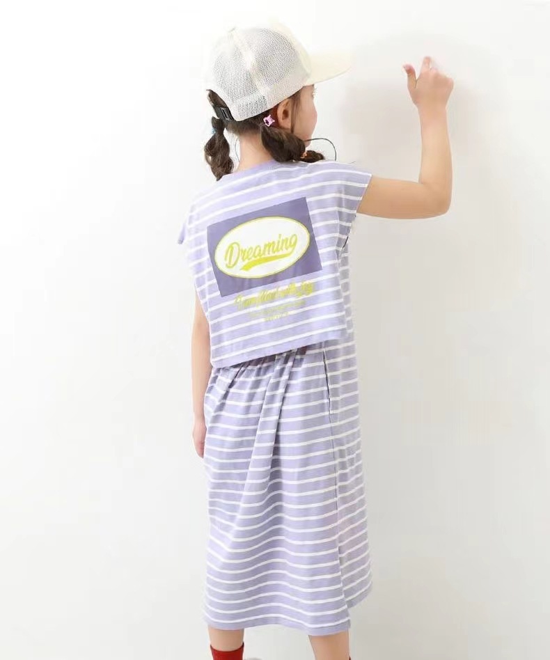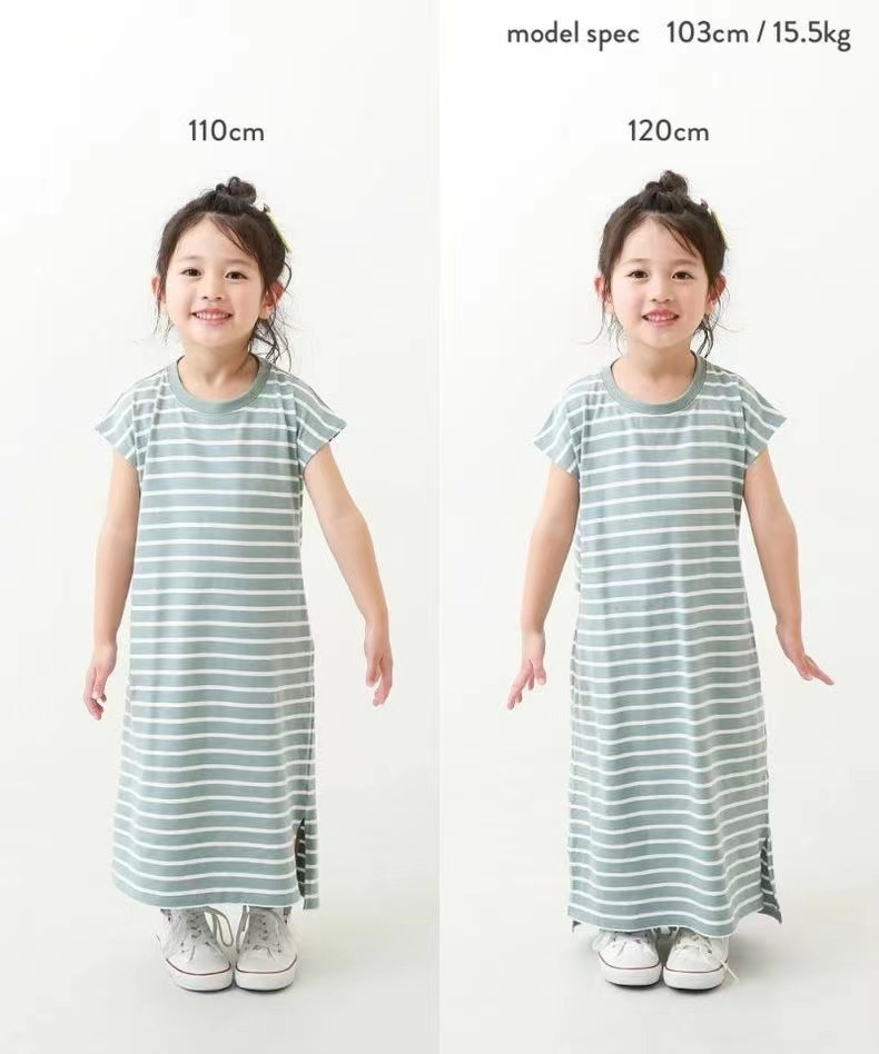 2023 여름 소녀 치마 다시 개방 탄성 스티치 통기성 스트라이프 반팔 원피스스토어 가기