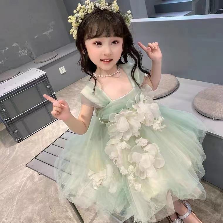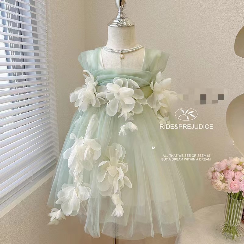 소녀의 원피스 여름 2024 새로운 아기 민소매 스트랩 공주 원피스 세련된 소녀의 거즈 요정 원피스스토어 가기