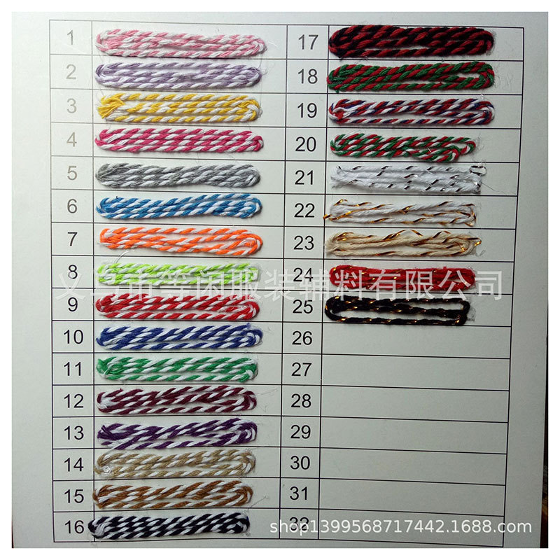 现货双色棉绳 (按照编号 在上面属性栏订购) 本款双色棉线经高新技术制造 ,经久耐用,拉力性特强。