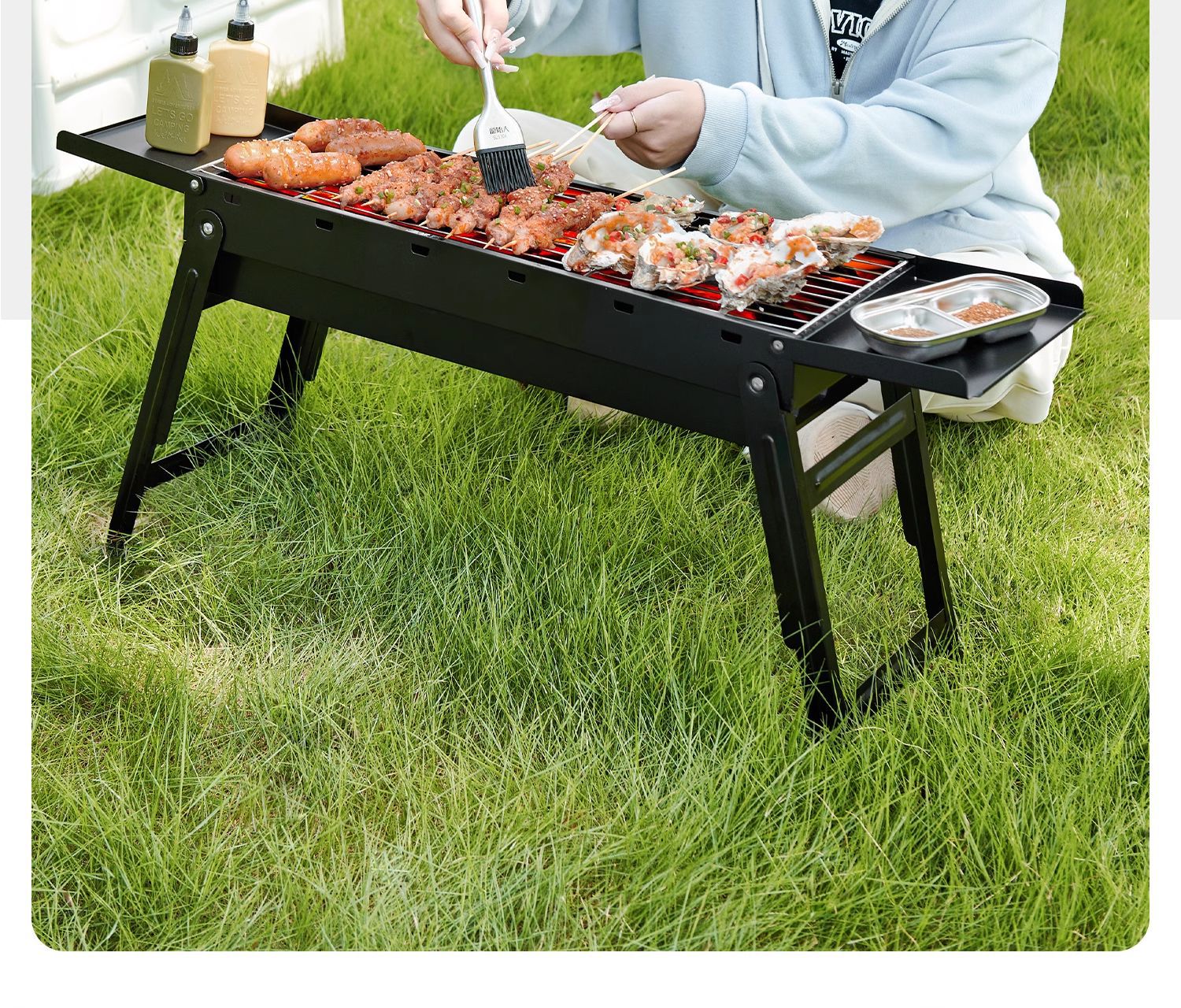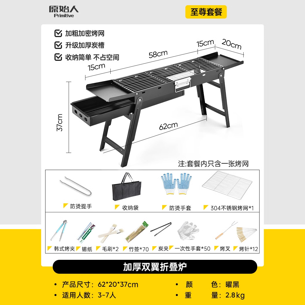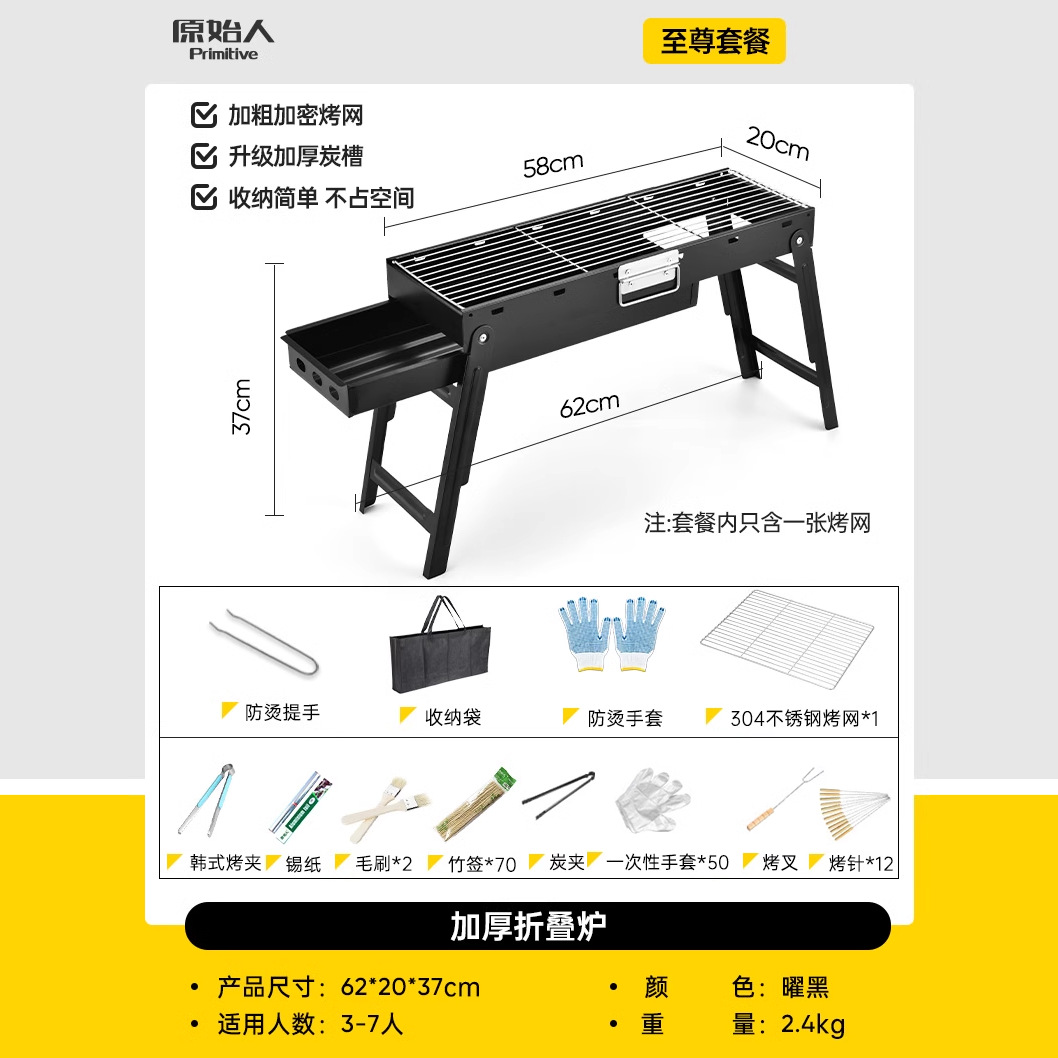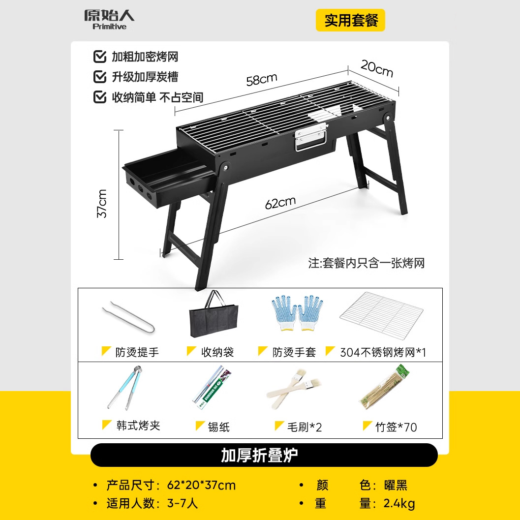 작은 두꺼운 가정용 바베큐 그릴 캠핑 야외 작은 오븐 스테인레스 스틸 접이식 스토브 야외 숯 그릴 선반스토어 가기