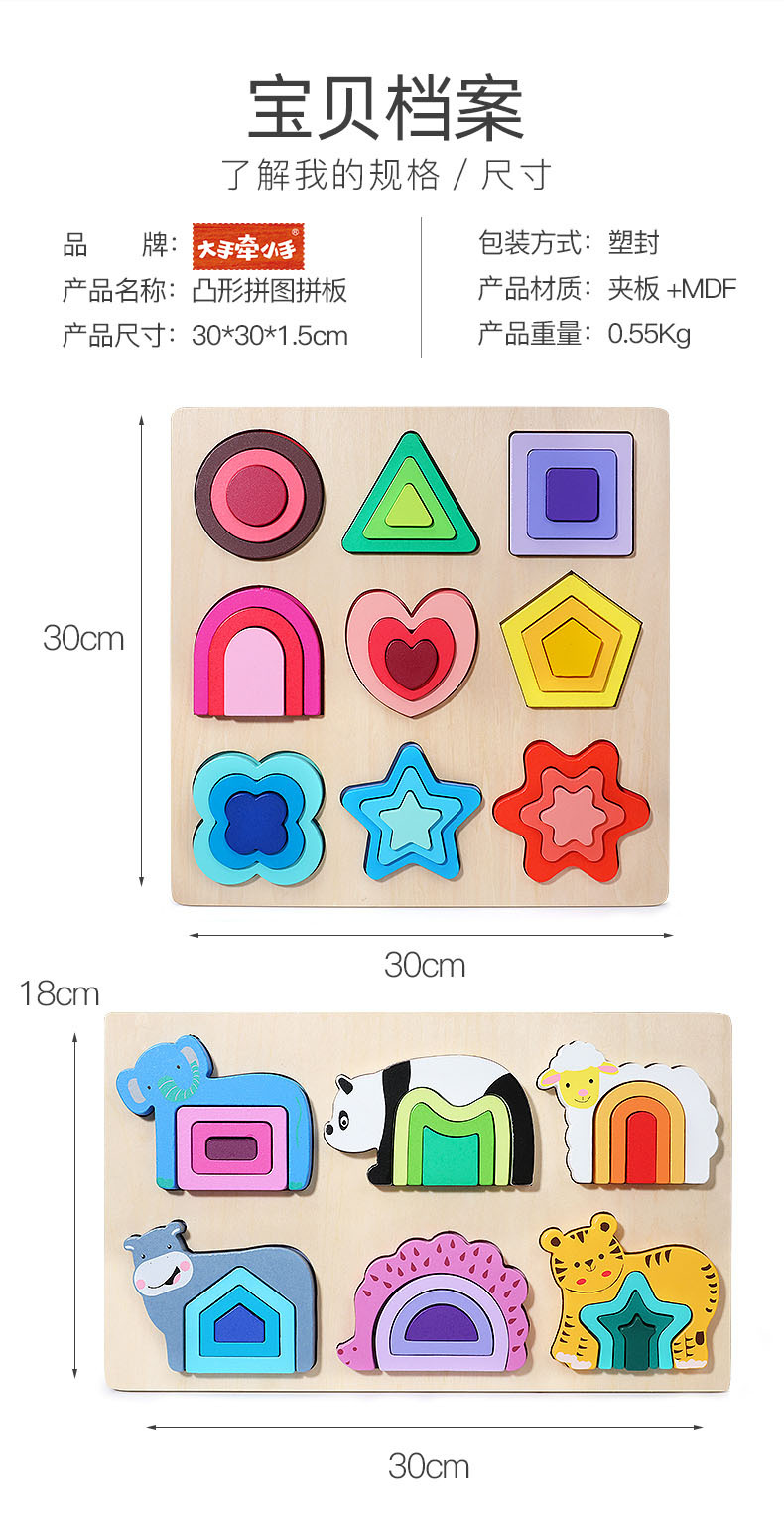儿童木质几何形状拼图宝宝形状认知配对数学等分拼板益智积木玩具