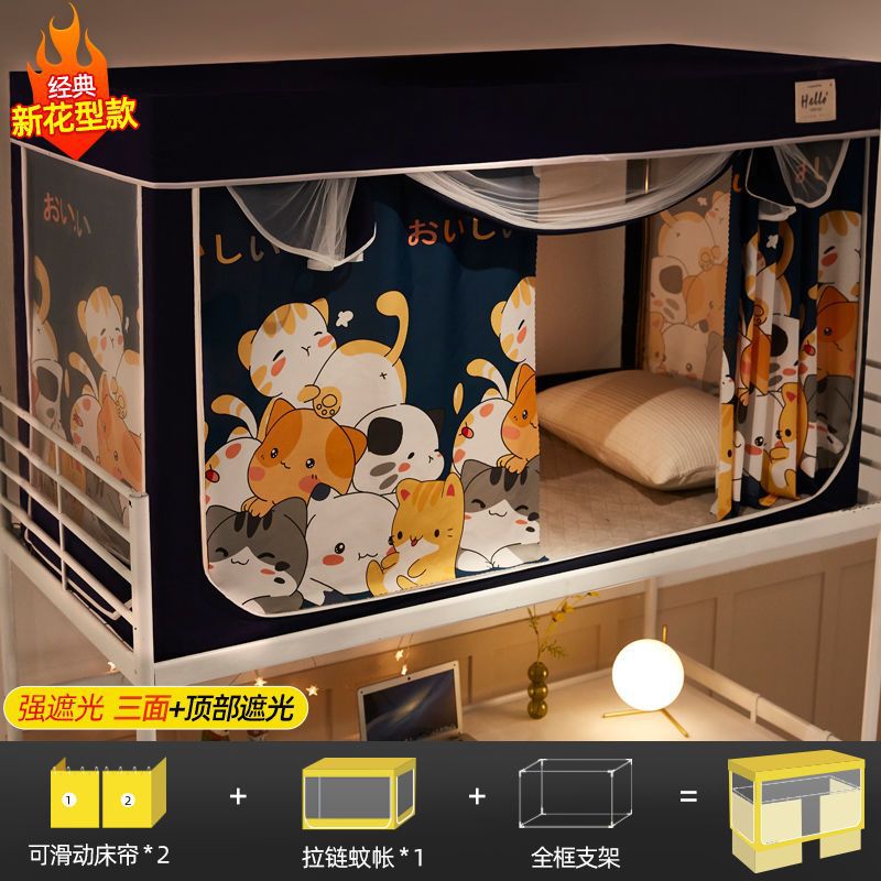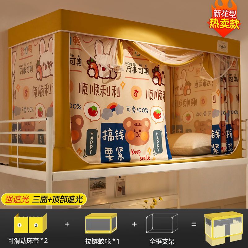 대학생 기숙사 침대 커튼 일체형 기숙사 싱글 이층 침대 차광 텐트 침대 커튼