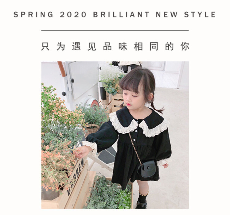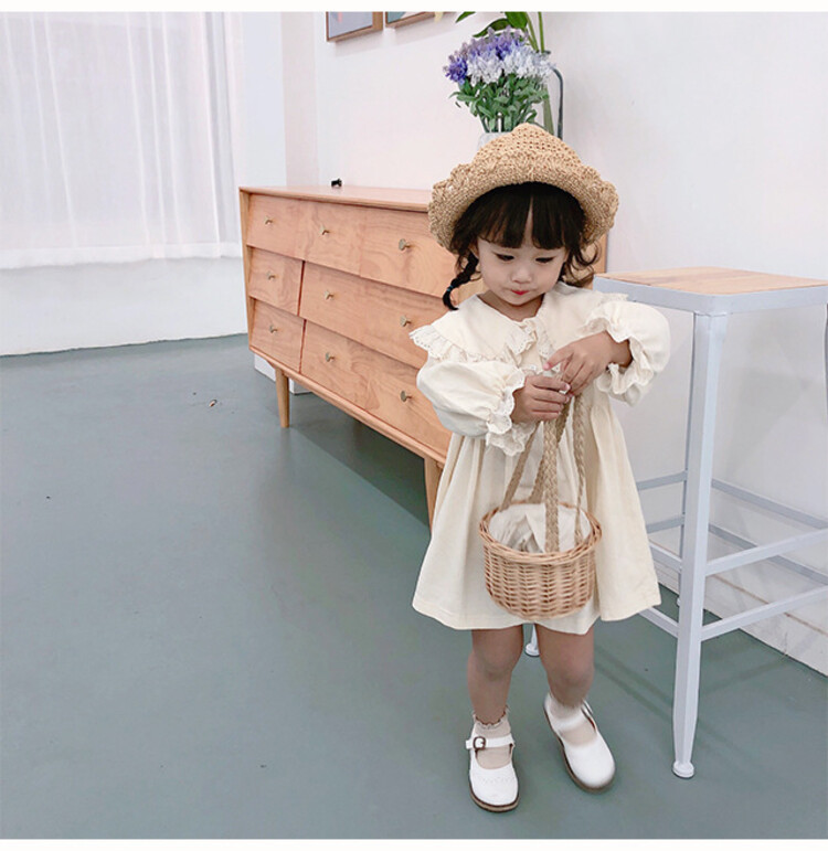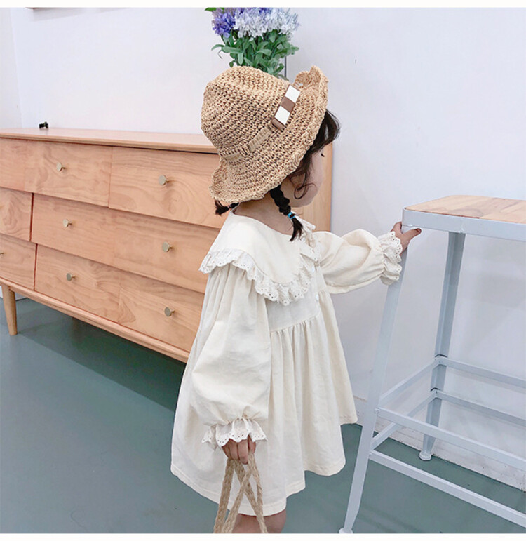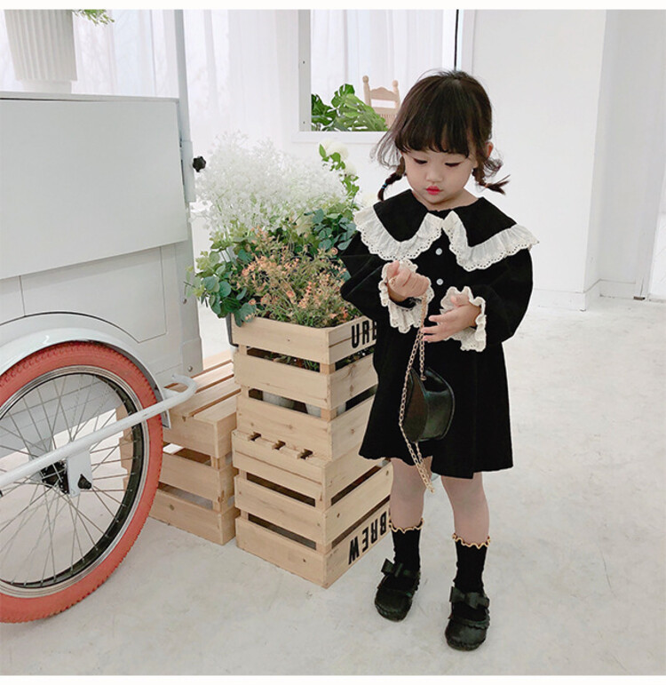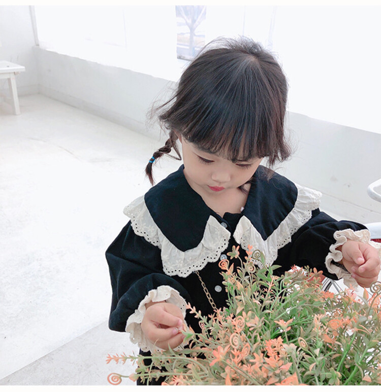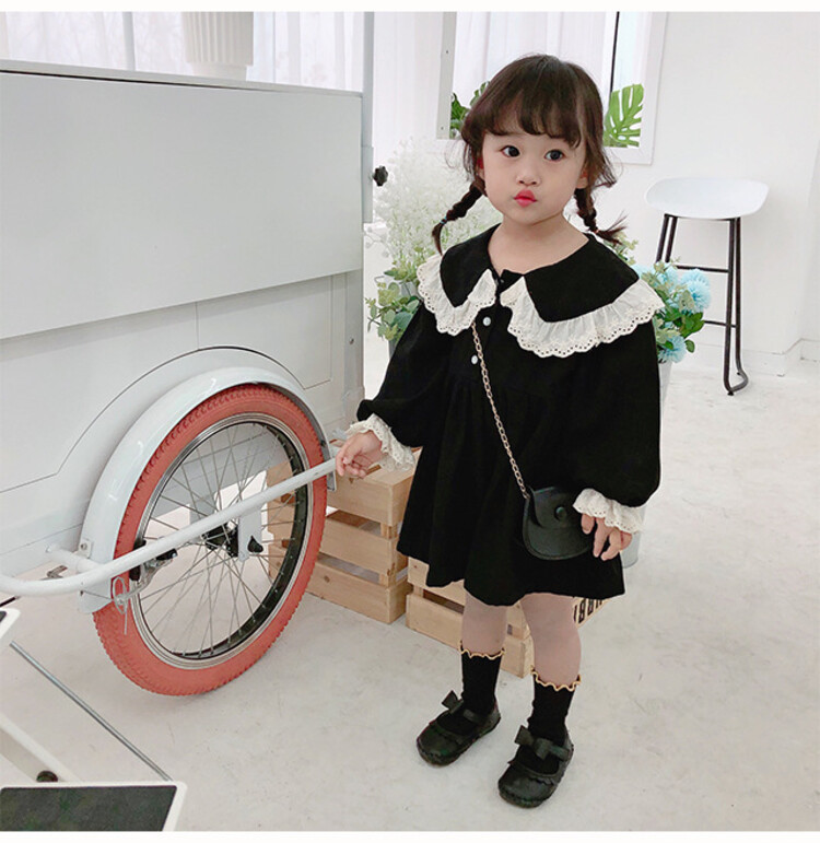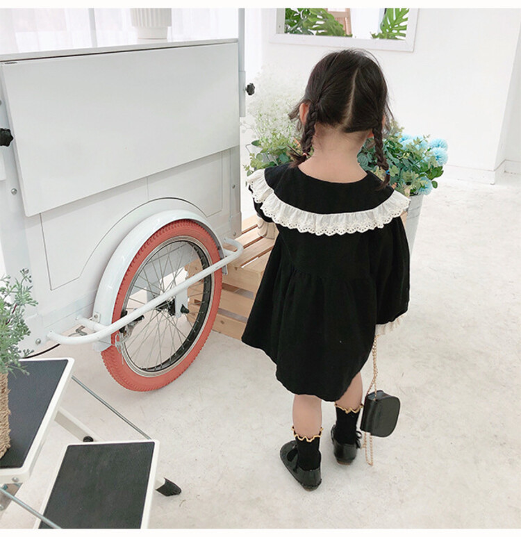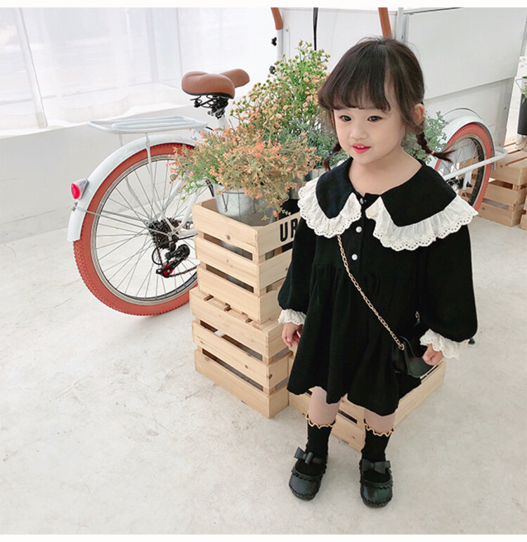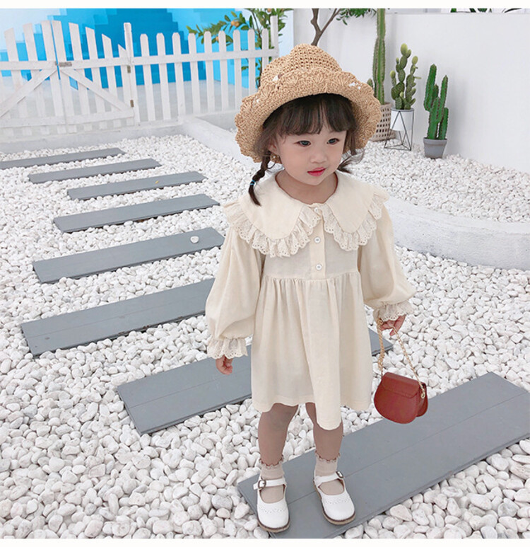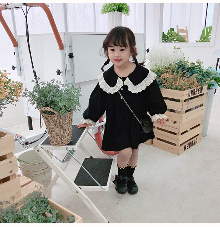 여아 레이스 칼라 단색 원피스 봄 가을 한국 스타일 아동용 긴팔 공주 드레스스토어 가기