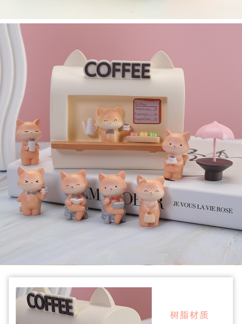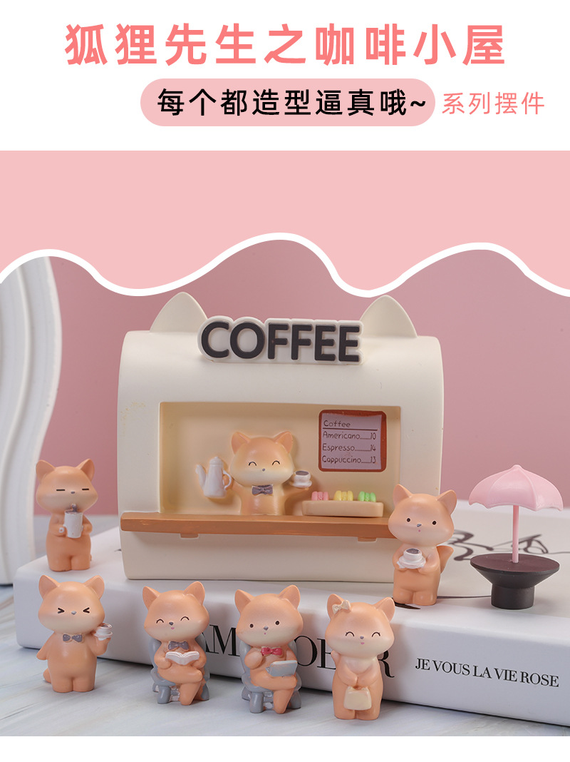학생 휴일 선물 미니 인형 씨 폭스의 커피 오두막 돼지 저금통 세트 장식품