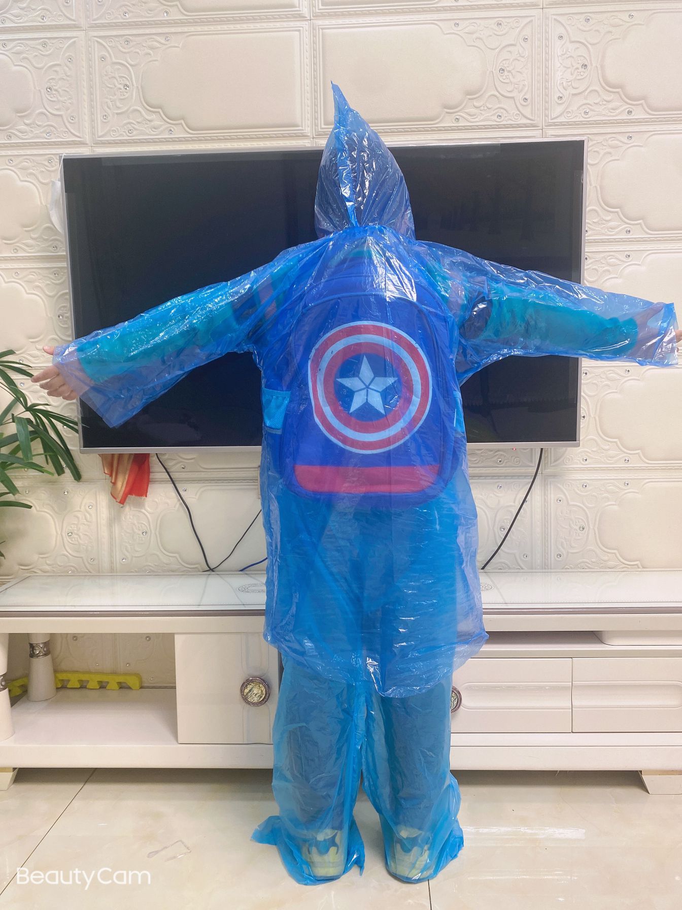 • 어린이용 70g 파란색 모자 끈 비옷 + 발 덮는 비옷